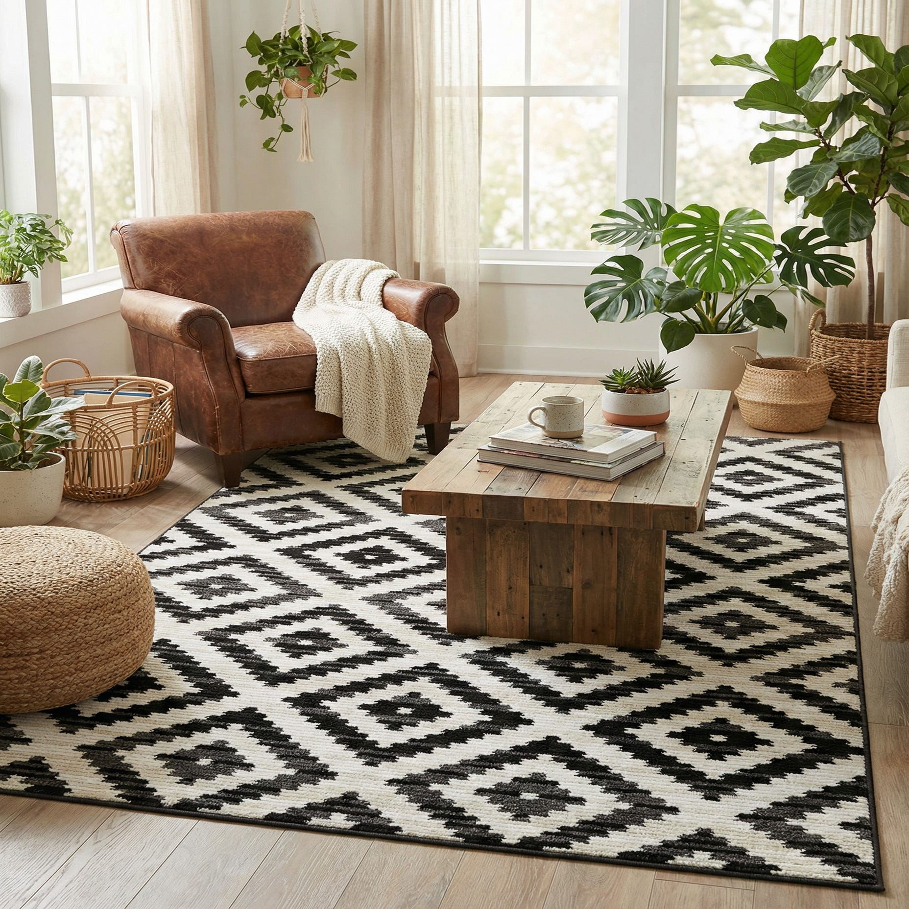 Primary color is Black and Ivory. Colors in this rug include: Black and Ivory, Gray.