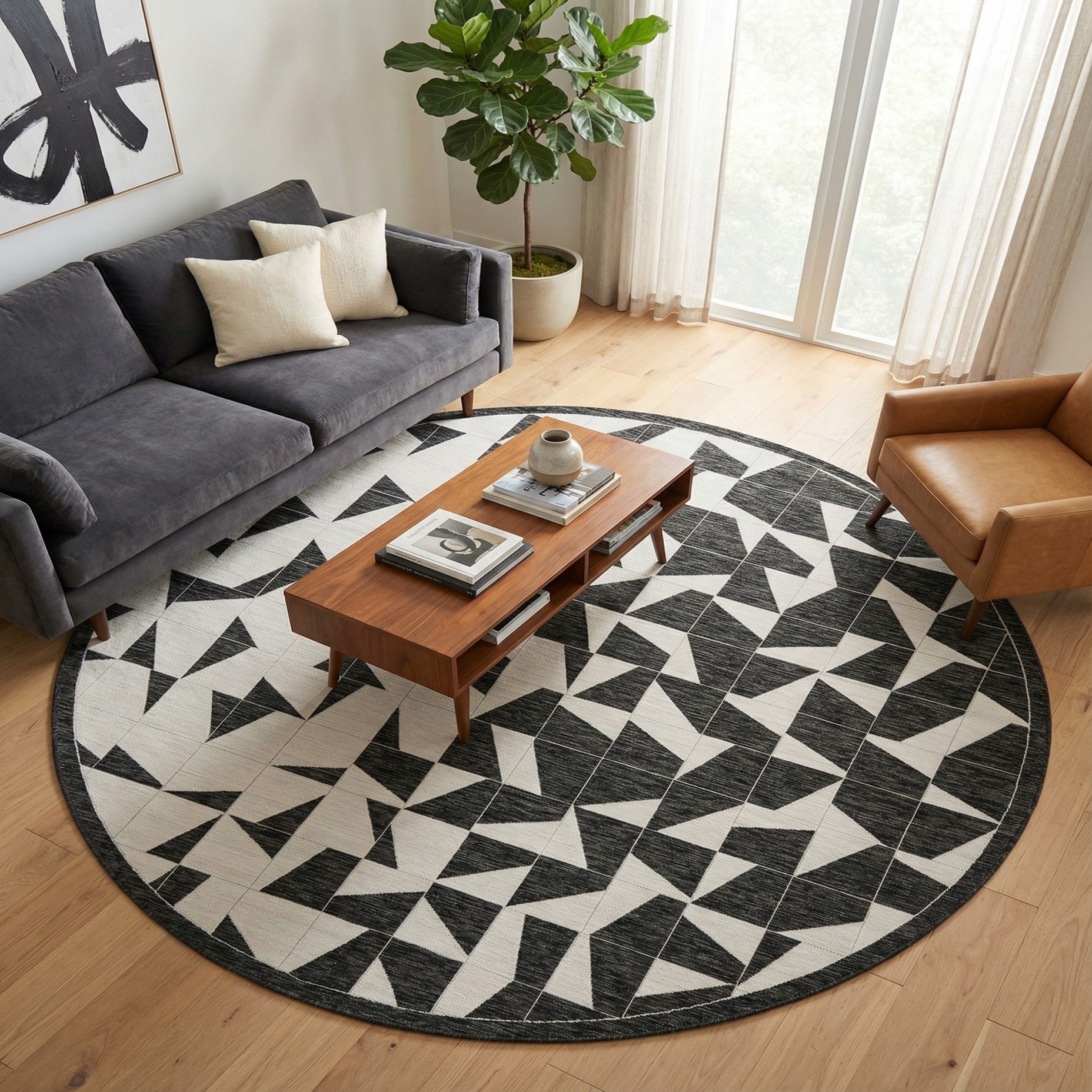 10' x 10' Washable Modern Indoor / Outdoor Round Rug