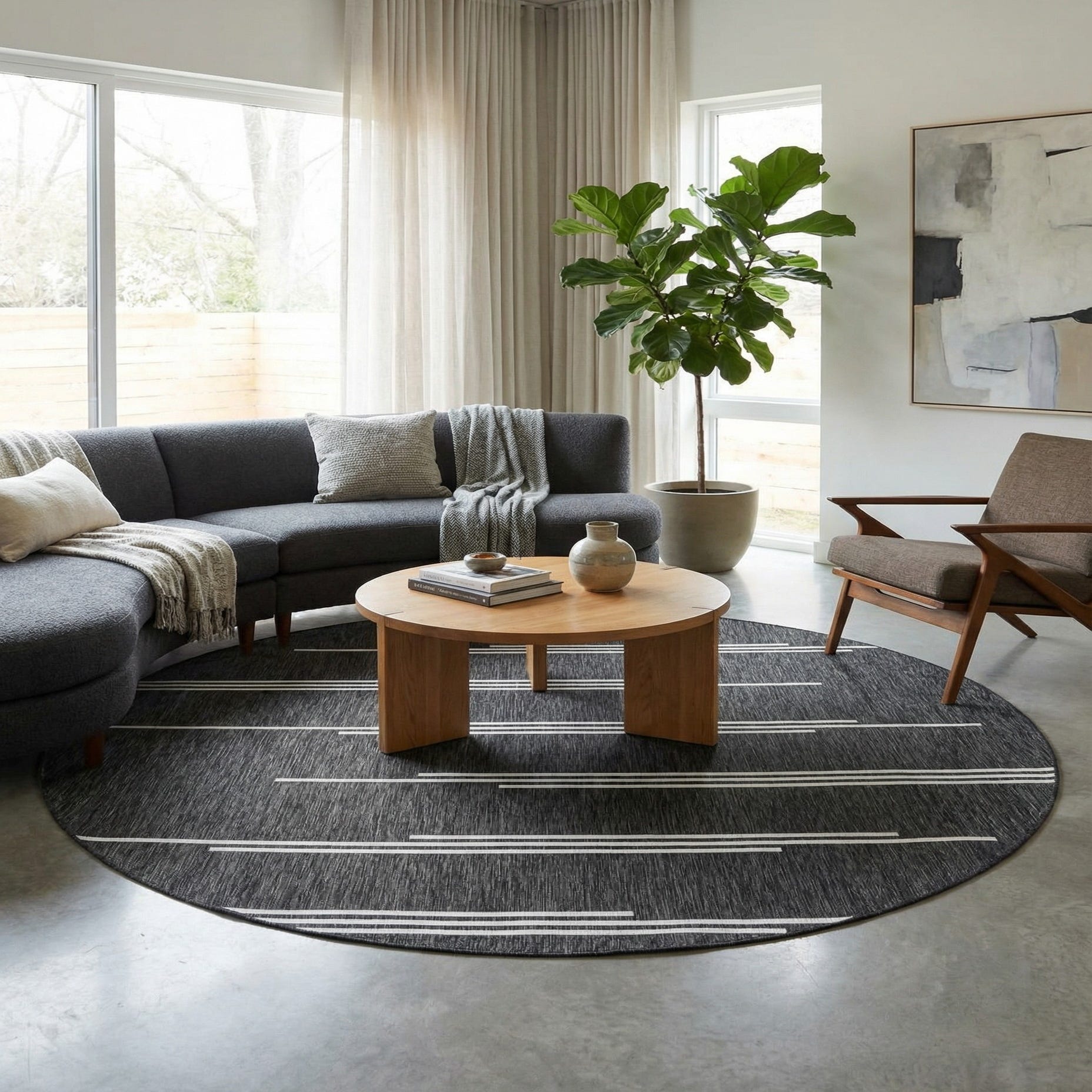 10' x 10' Washable Modern Indoor / Outdoor Round Rug