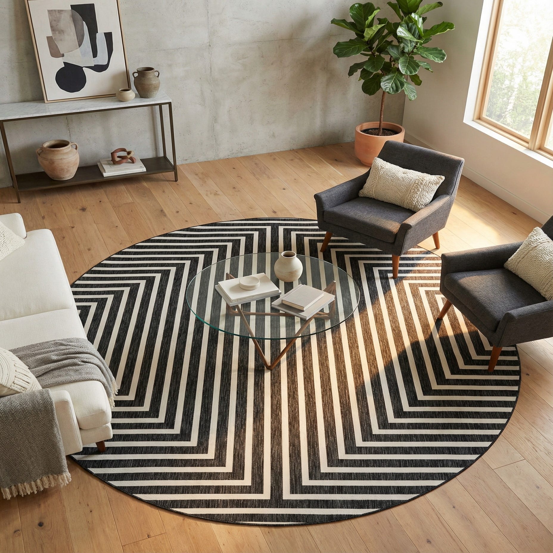 10' x 10' Washable Modern Indoor / Outdoor Round Rug