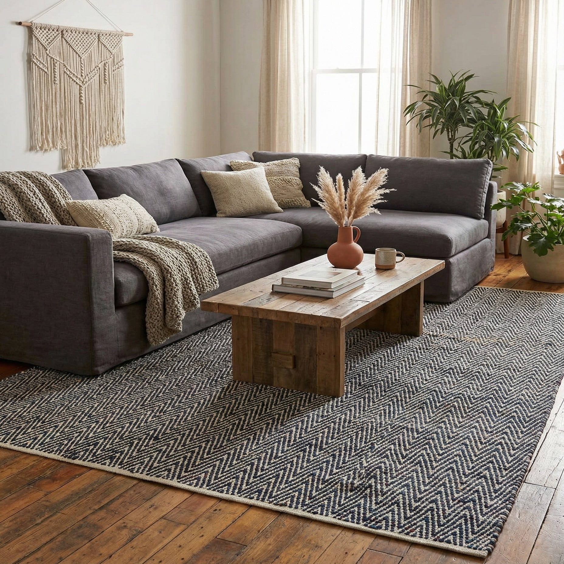 10' x 14' 1 Hand Woven Chindi Chevron Rug
