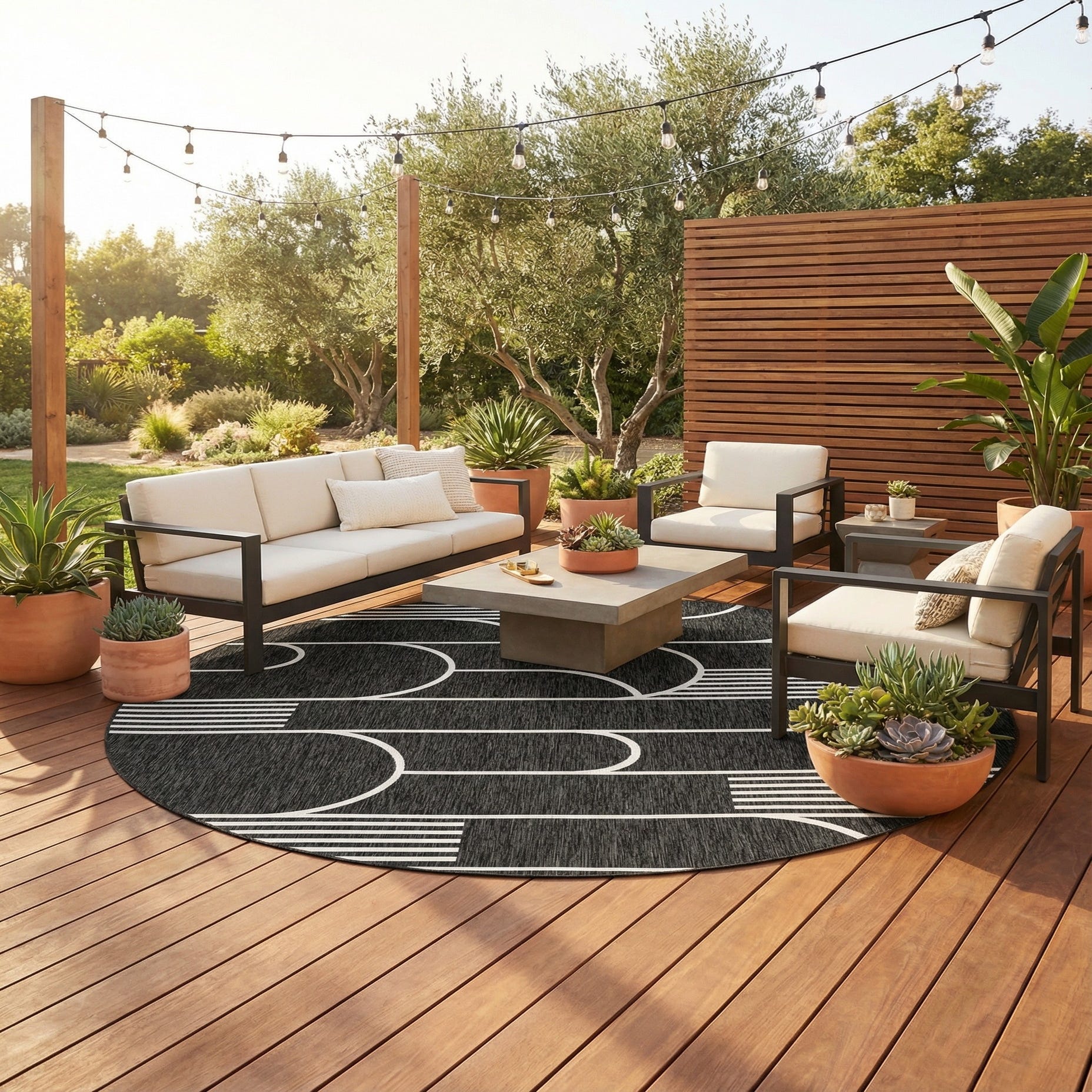 12' x 12' Washable Modern Indoor / Outdoor Round Rug