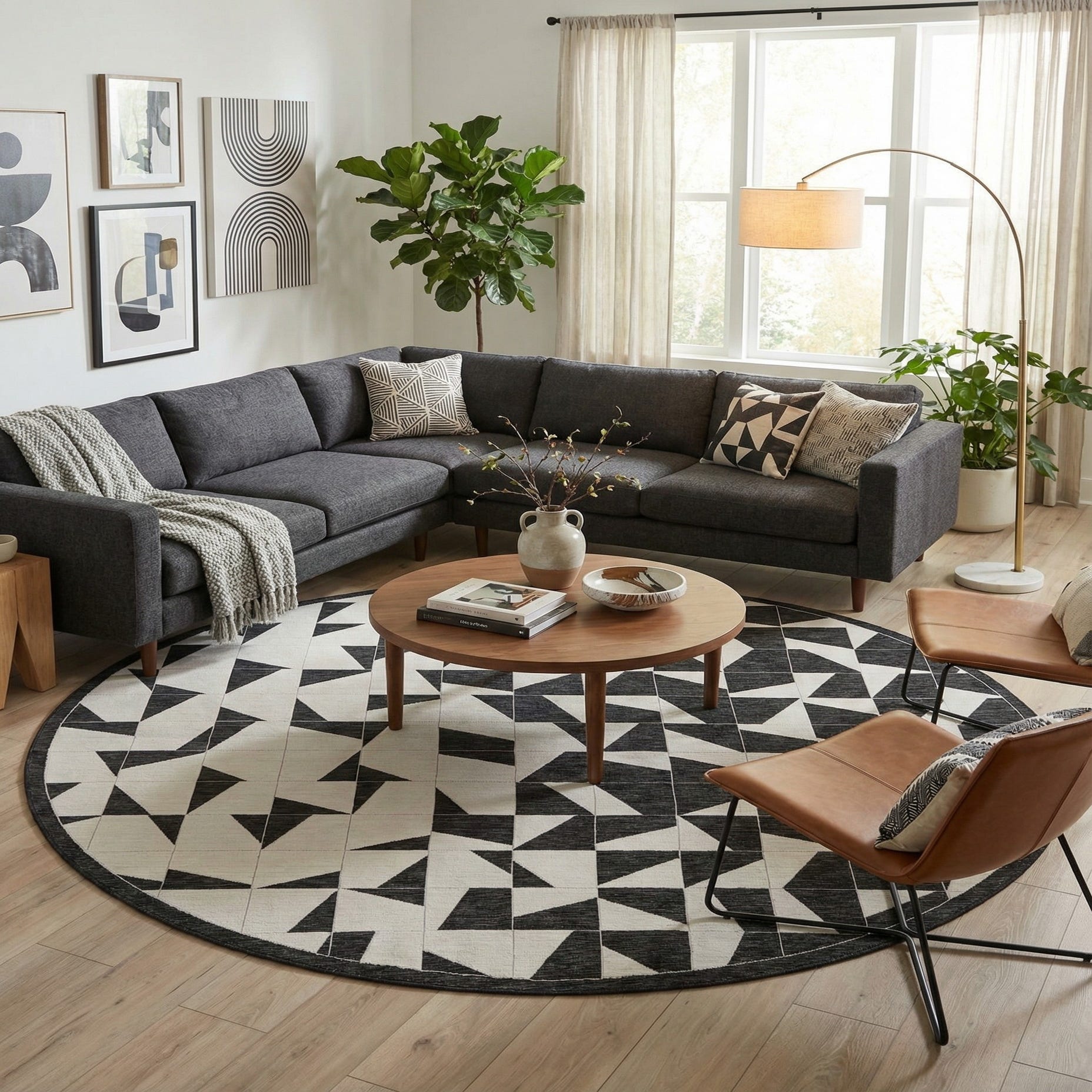 12' x 12' Washable Modern Indoor / Outdoor Round Rug