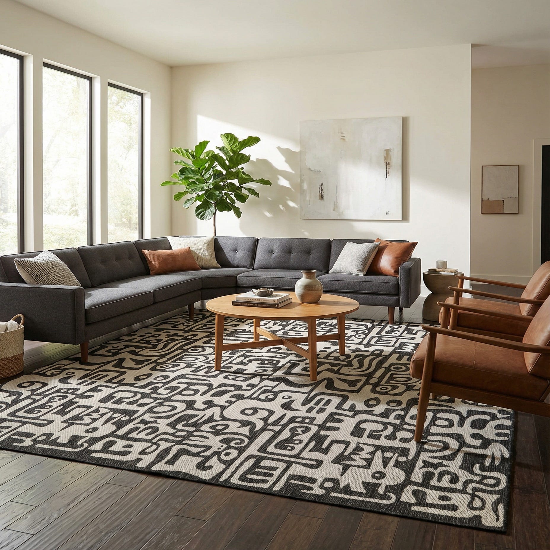 12' x 12' Washable Modern Indoor / Outdoor Square Rug