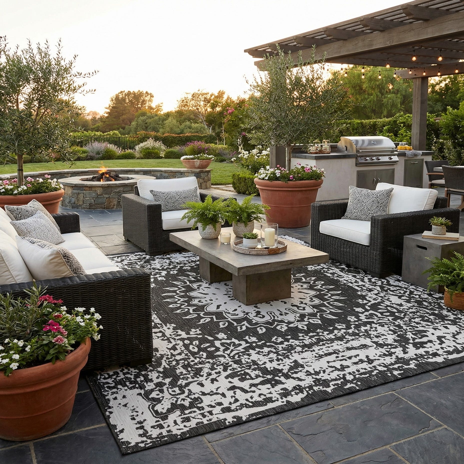 Detail image of 12' x 12'  Washable Traditional Indoor / Outdoor Square Rug