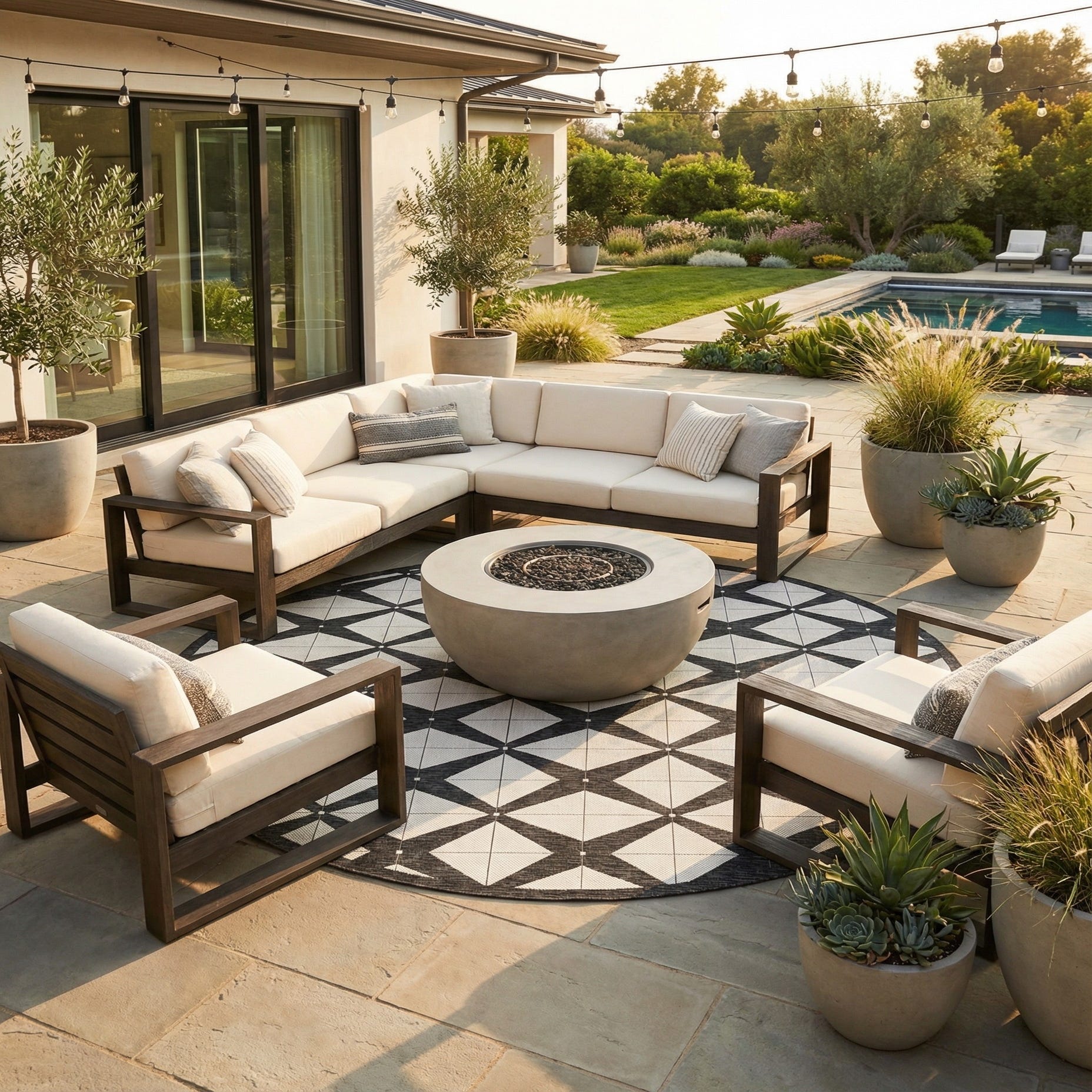 13' x 13' Washable Modern Indoor / Outdoor Round Rug