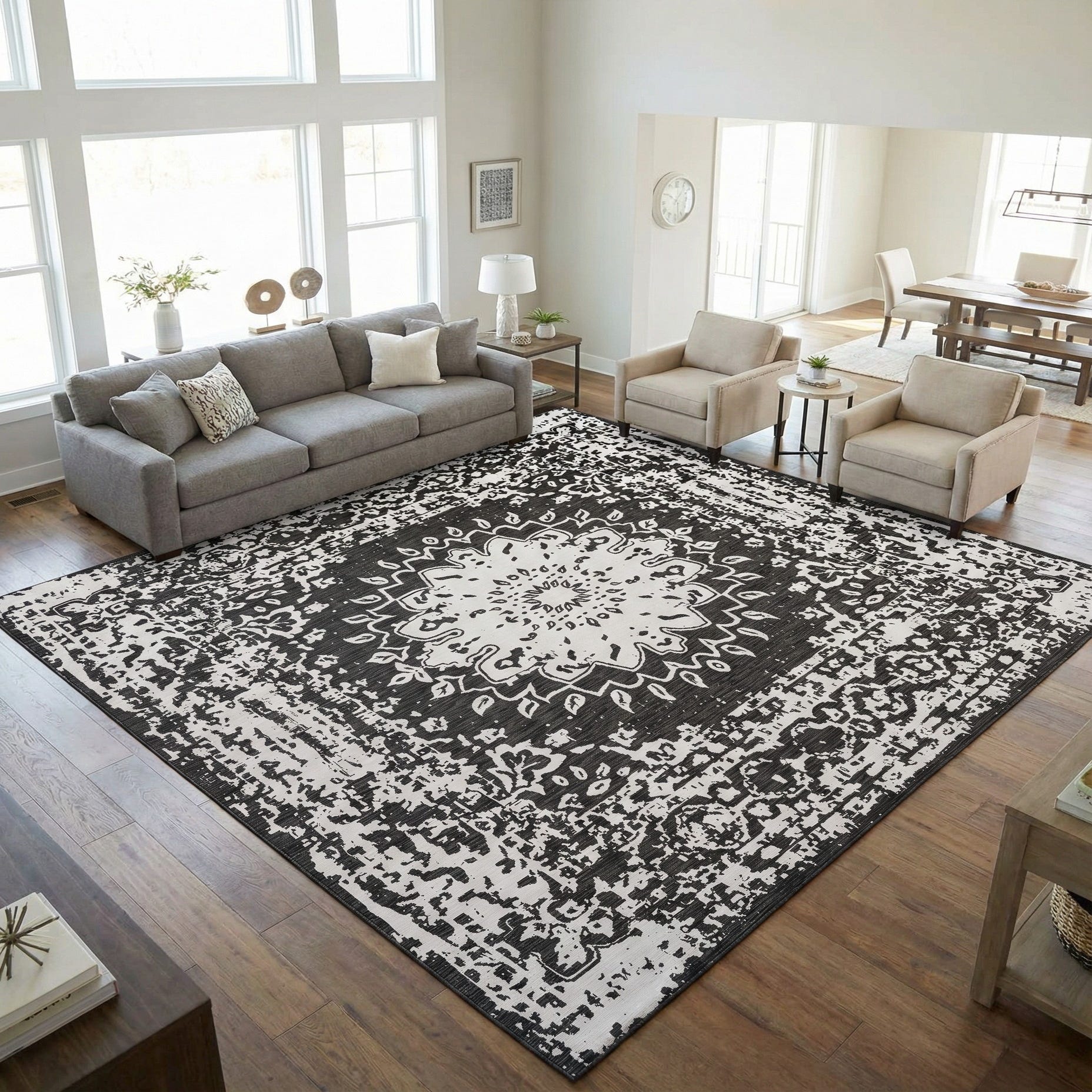 Detail image of 13' x 13'  Washable Traditional Indoor / Outdoor Square Rug