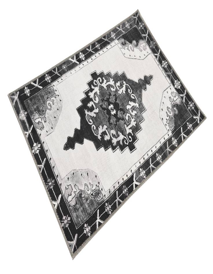 Primary color is Black and White. Colors in this rug include: Black and White, Gray.