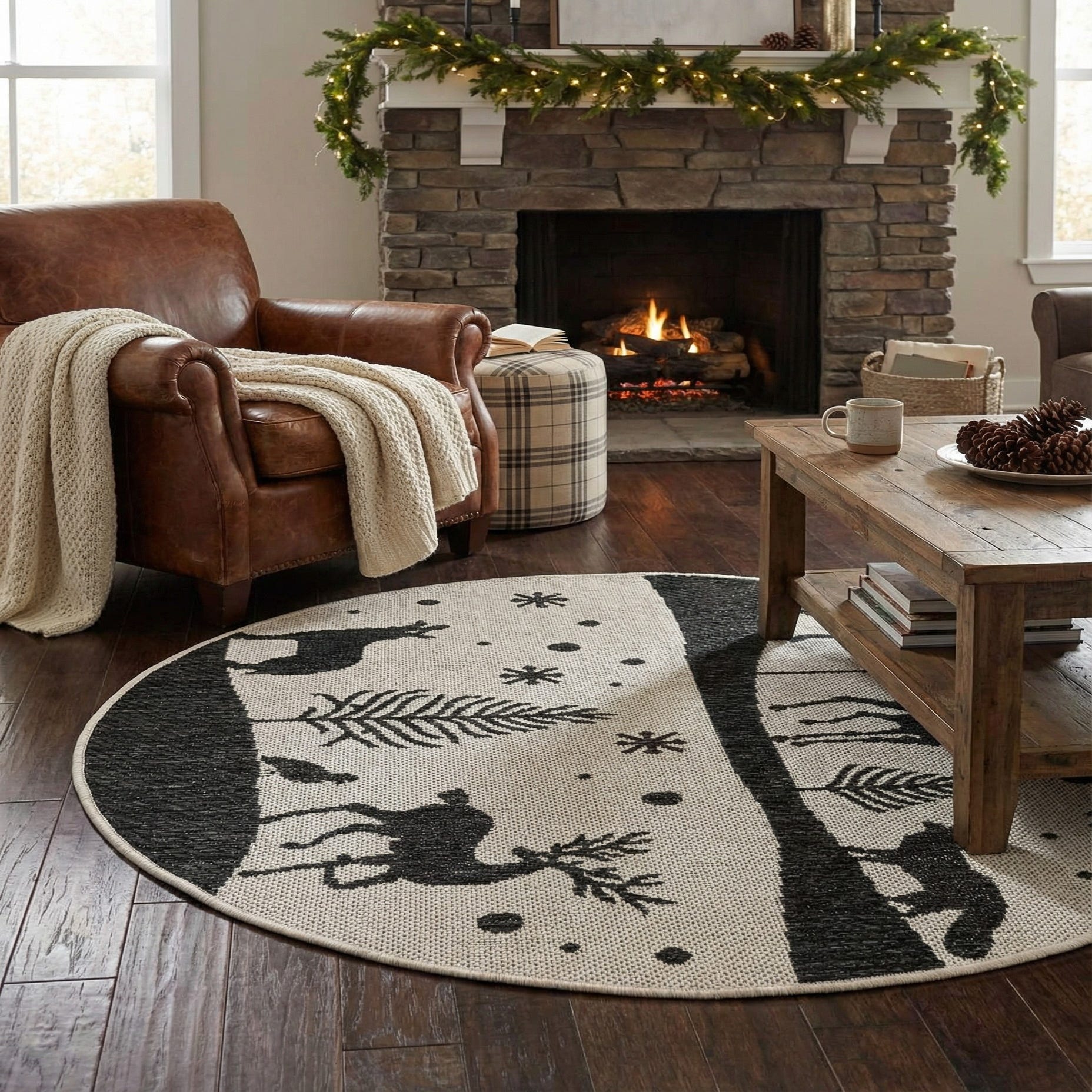 3' x 3' Washable Holiday Indoor / Outdoor Round Rug