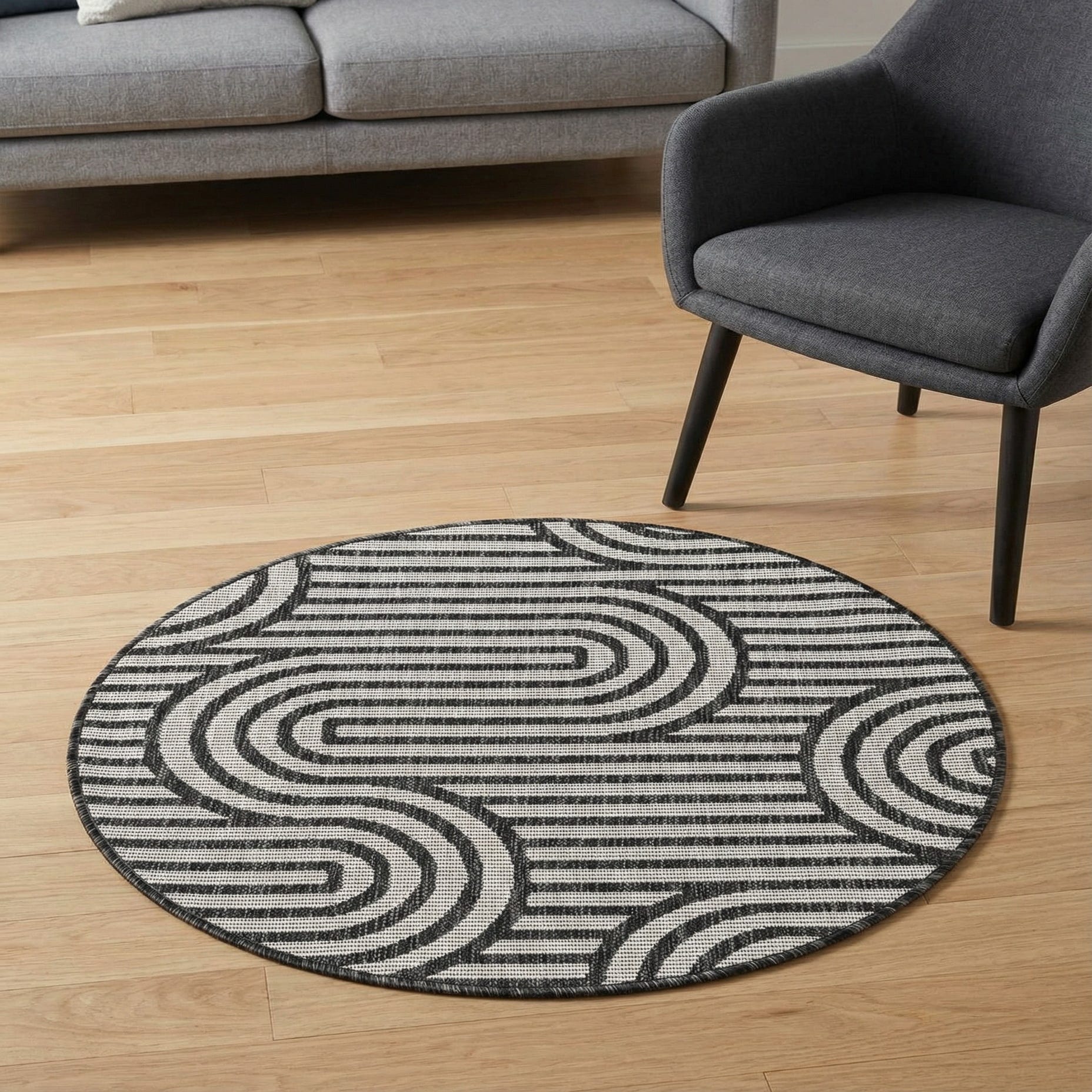 3' x 3' Washable Modern Indoor / Outdoor Round Rug