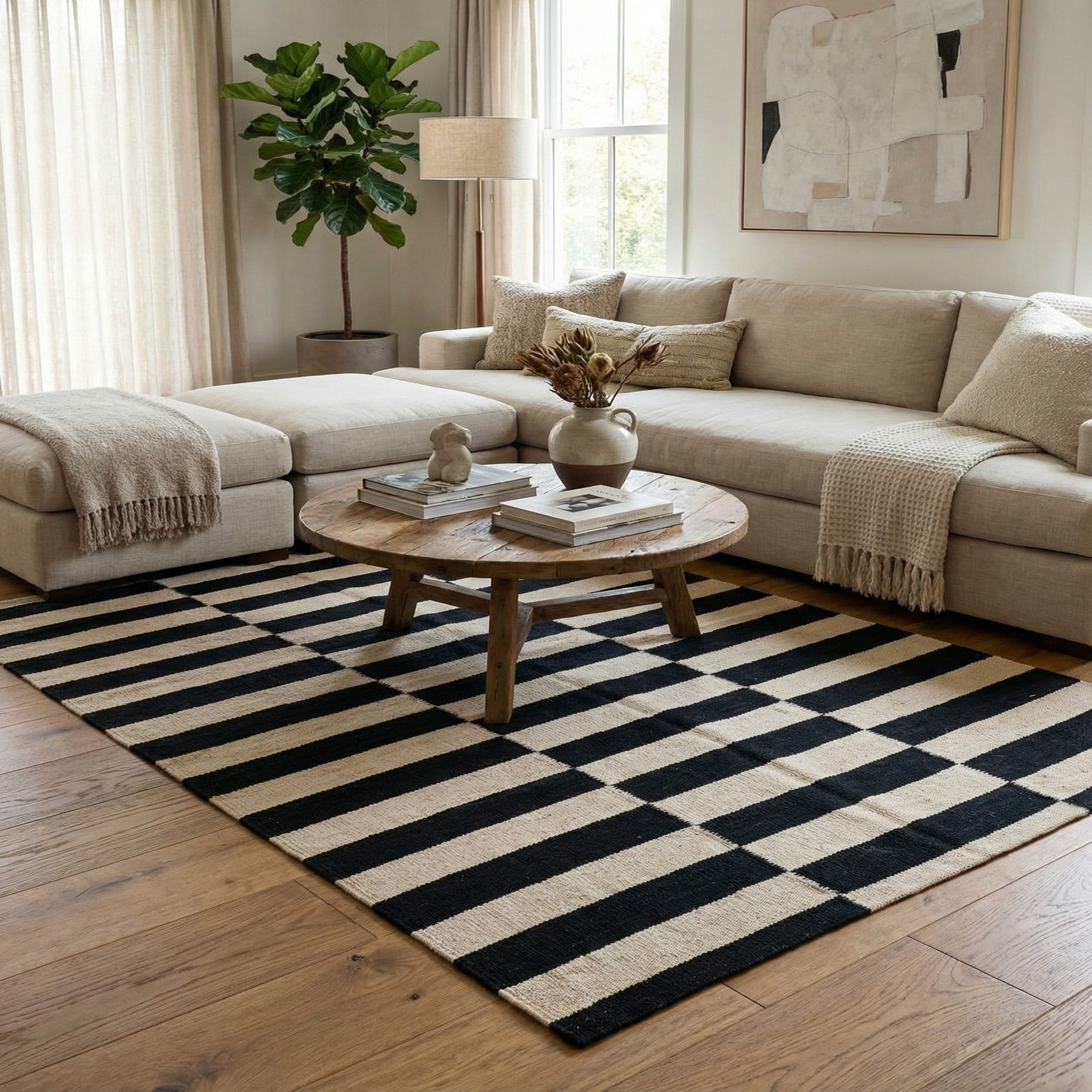 Primary image 3' 4 x 4' 9  Hand Woven Kilim Modern Wool Rug