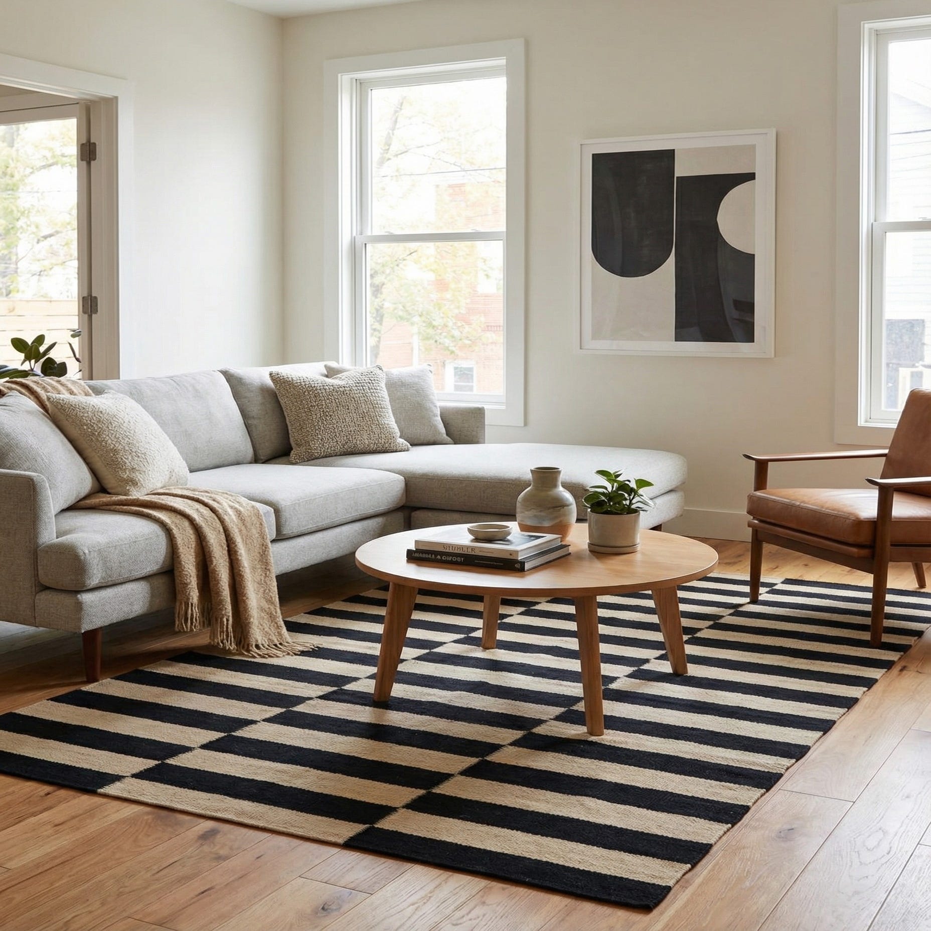Detail image of 3' 3 x 4' 10  Hand Woven Kilim Modern Wool Rug