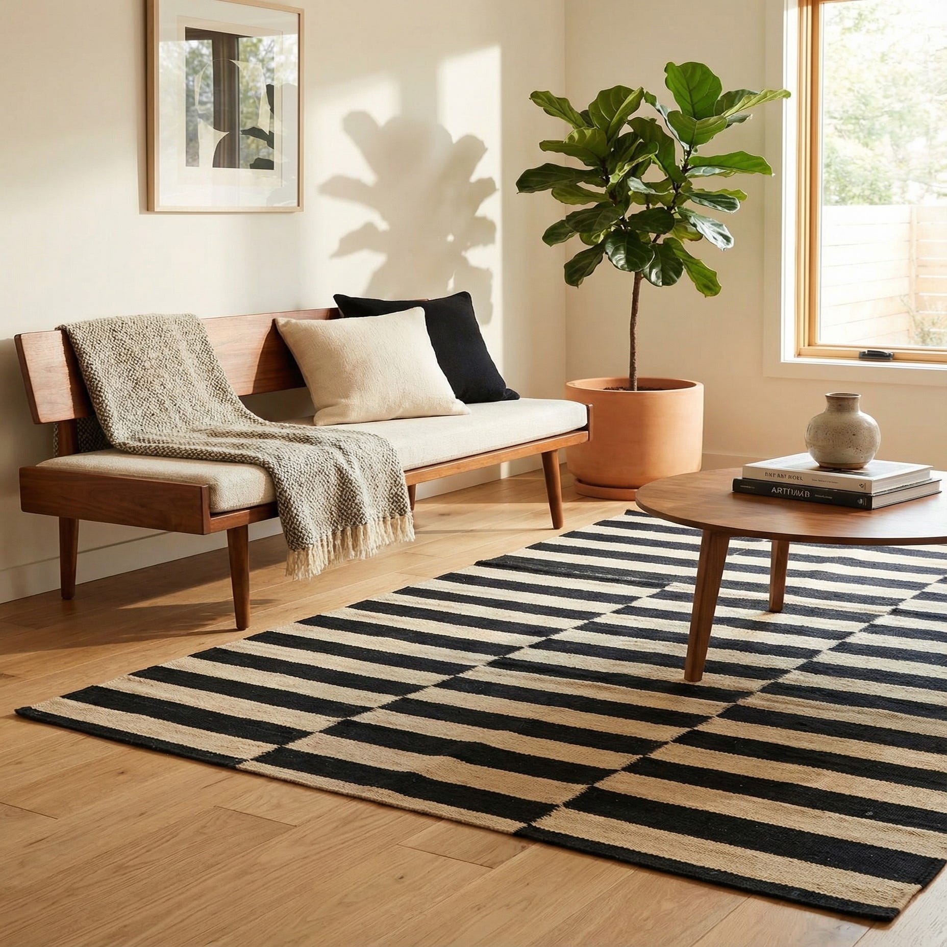 Detail image of 3' 2 x 4' 9  Hand Woven Kilim Modern Wool Rug
