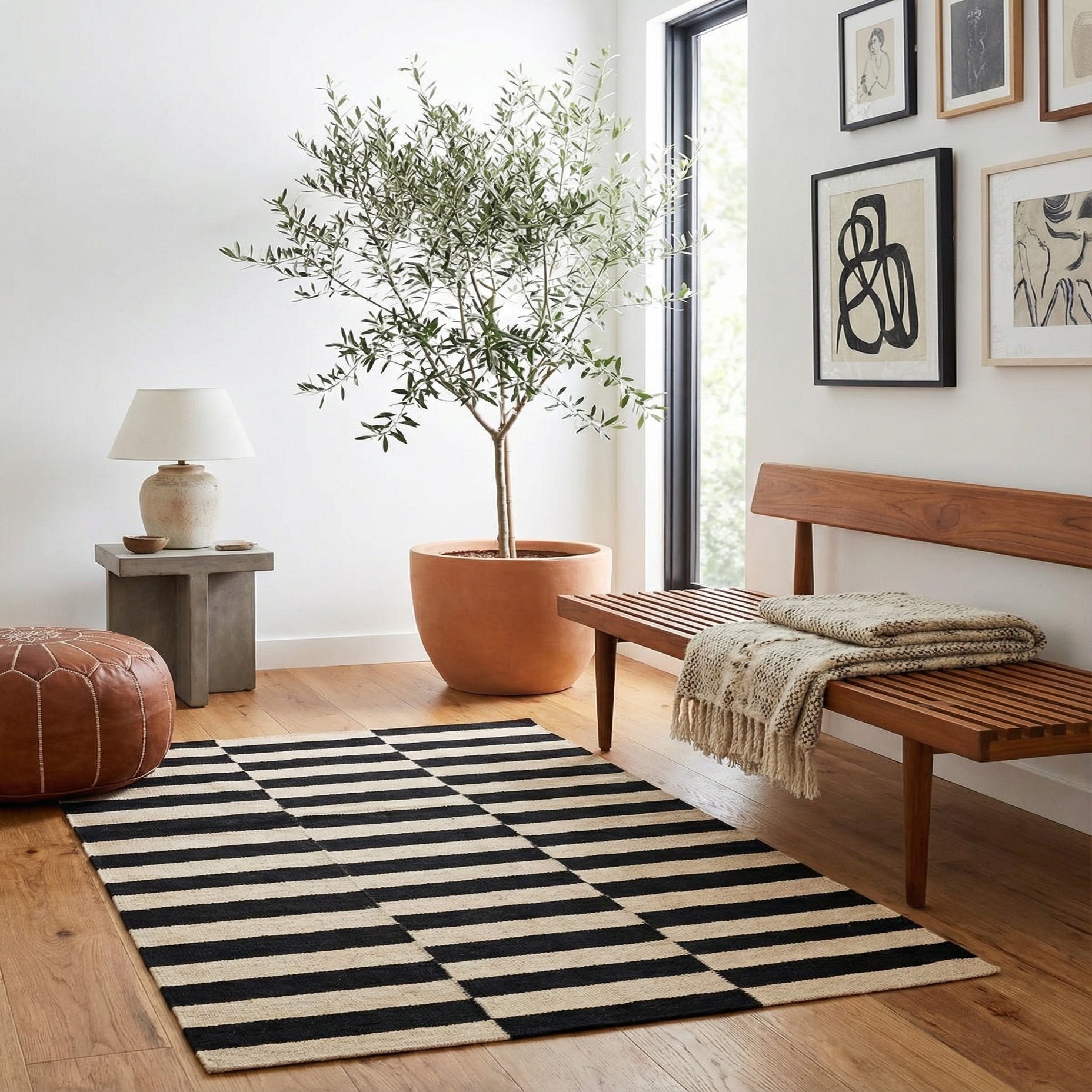 Detail image of 3' 4 x 4' 10  Hand Woven Kilim Modern Wool Rug