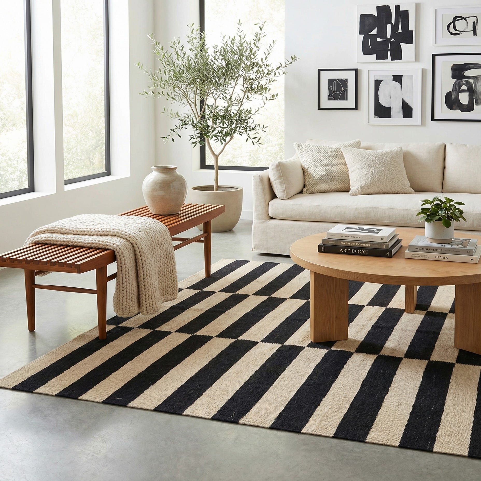 3' 6 x 4' 10 Hand Woven Kilim Modern Wool Rug
