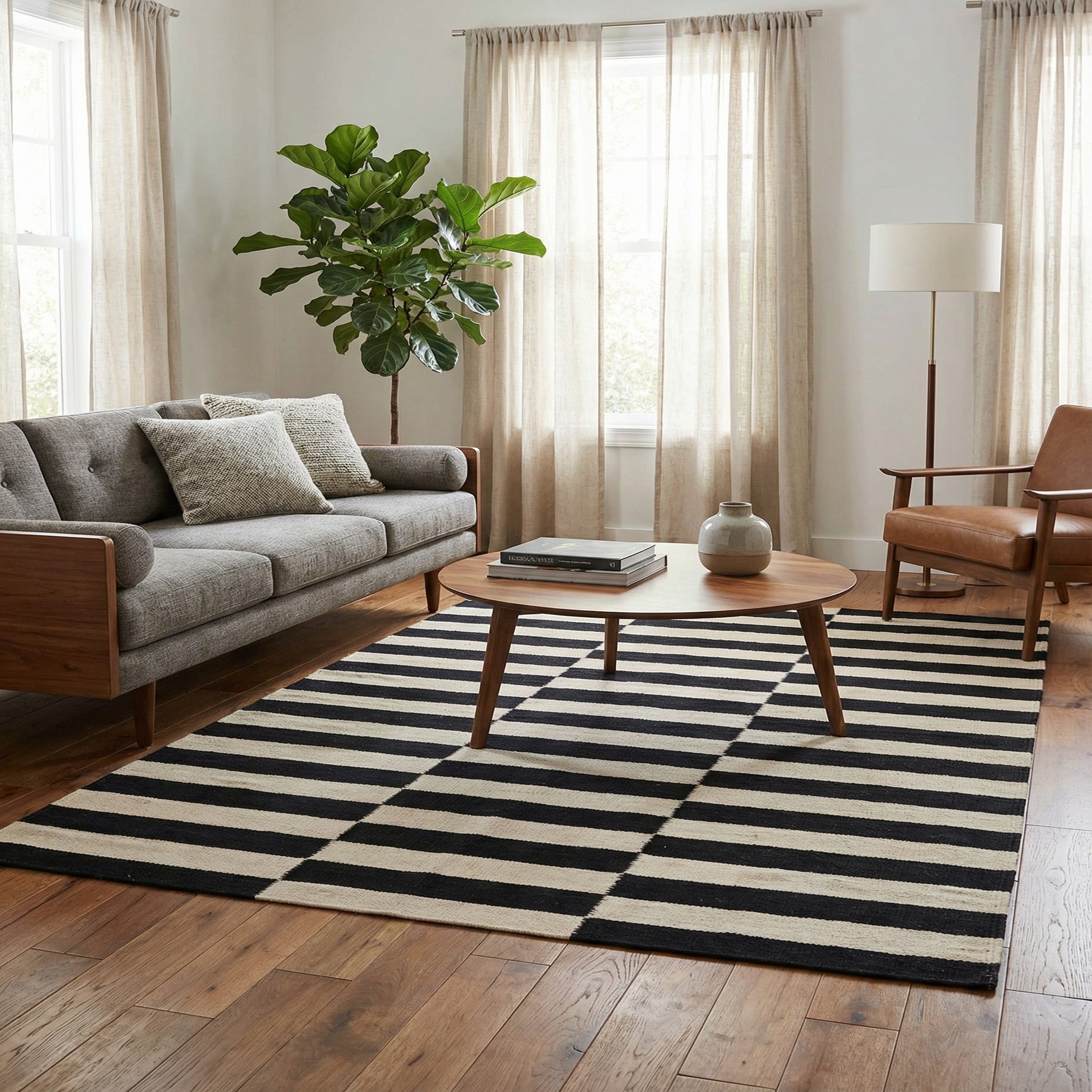 Detail image of 3' 4 x 4' 11  Hand Woven Kilim Modern Wool Rug
