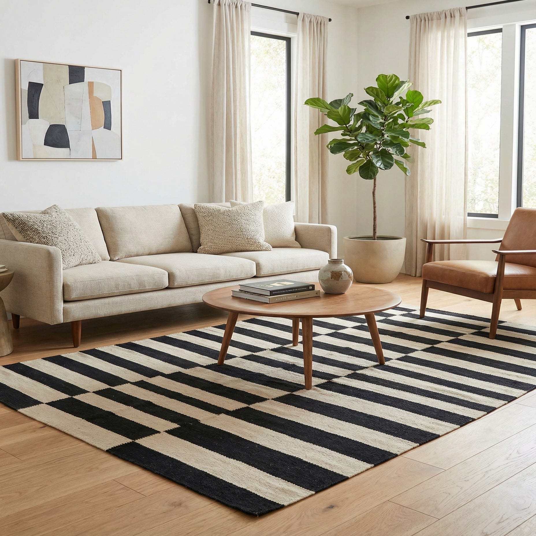 3' 4 x 4' 11 Hand Woven Kilim Modern Wool Rug