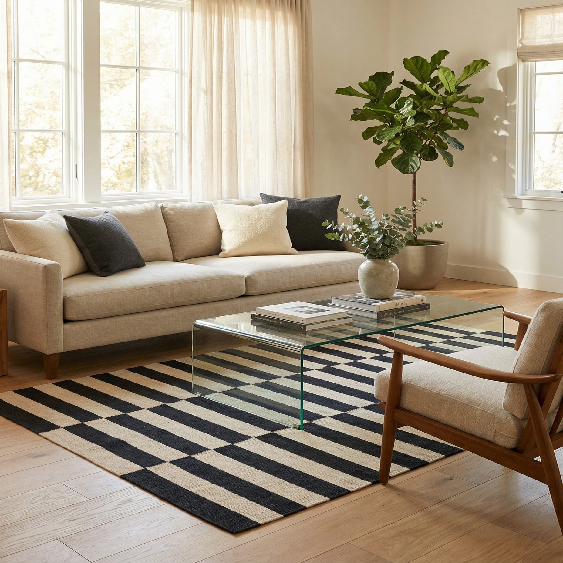 Primary image 3' 4 x 4' 10  Hand Woven Kilim Modern Wool Rug