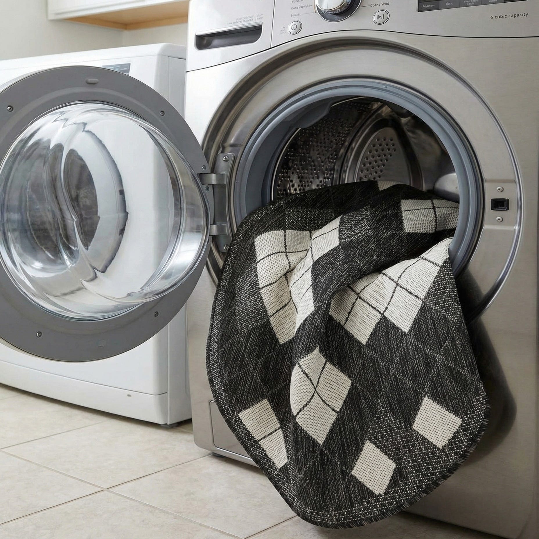 Detail image of 4' x 4'  Washable Modern Indoor / Outdoor Round Rug