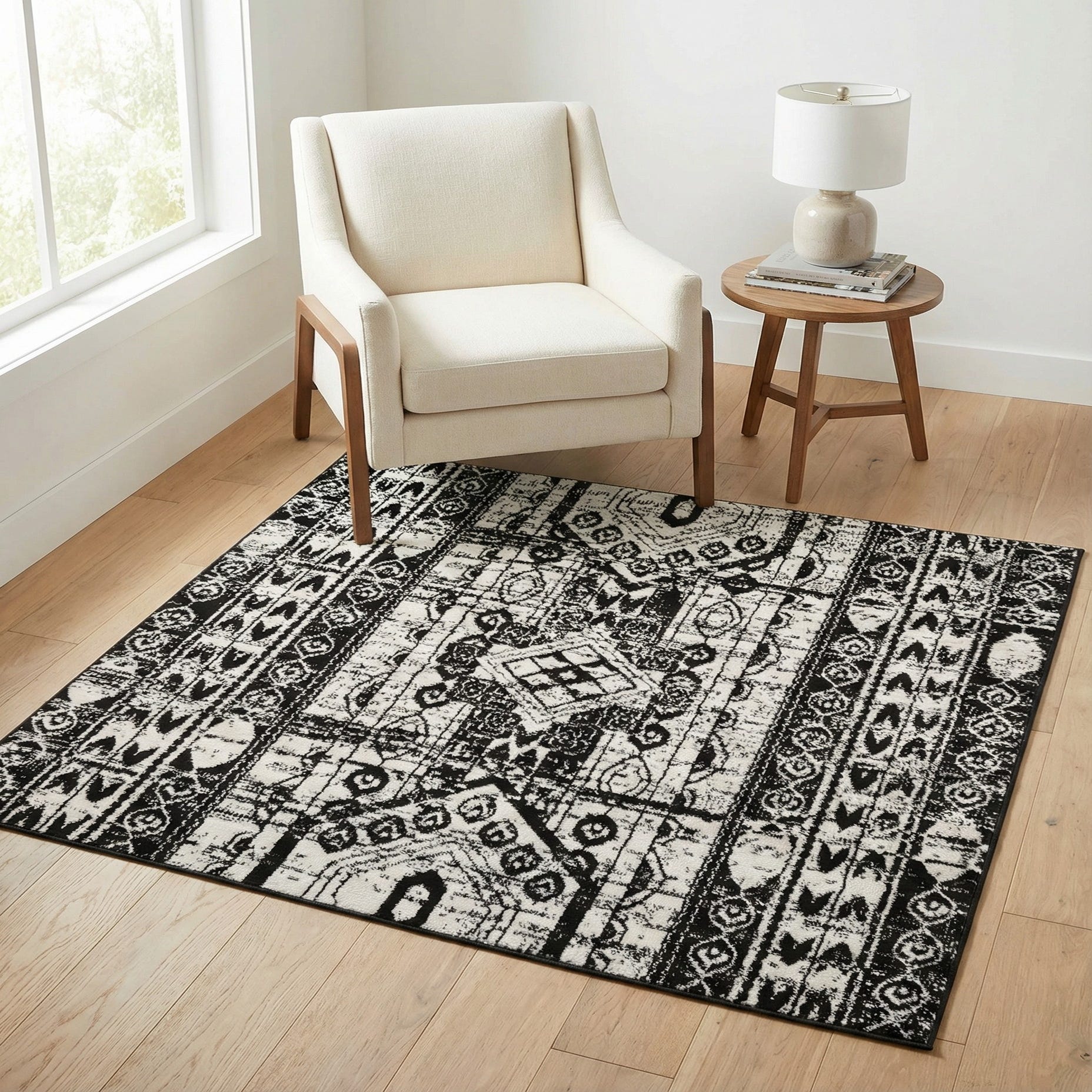 Primary color is Black and White. Colors in this rug include: Black and White, Black.