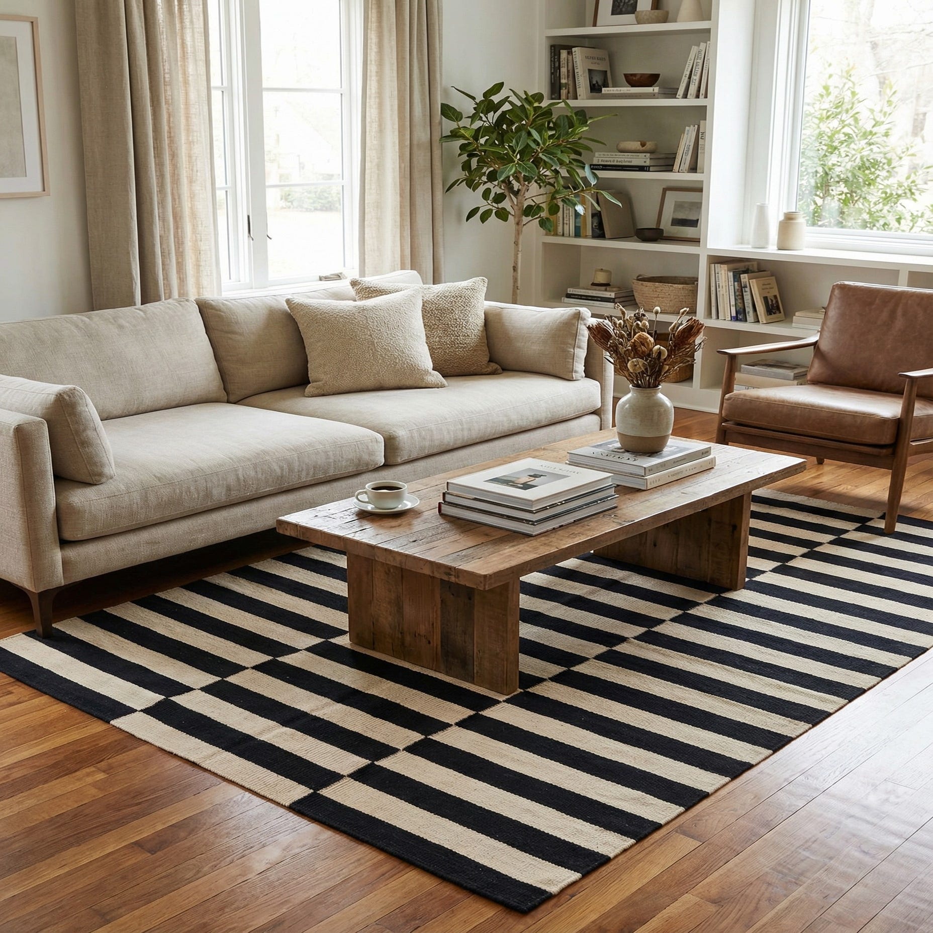 Detail image of 4' 3 x 6' 1  Hand Woven Kilim Modern Wool Rug