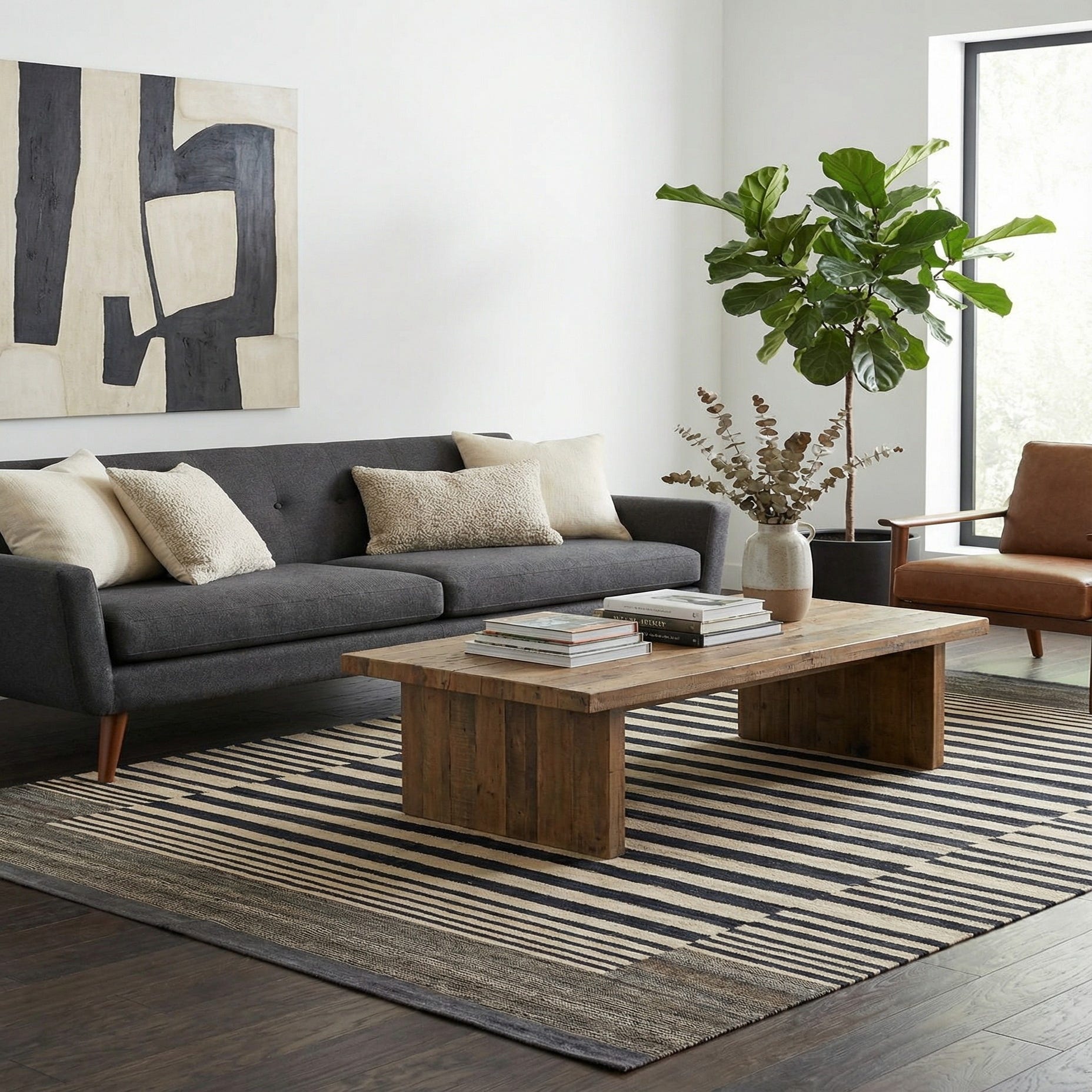 Primary color is Black and White. Colors in this rug include: Black and White, Gray.