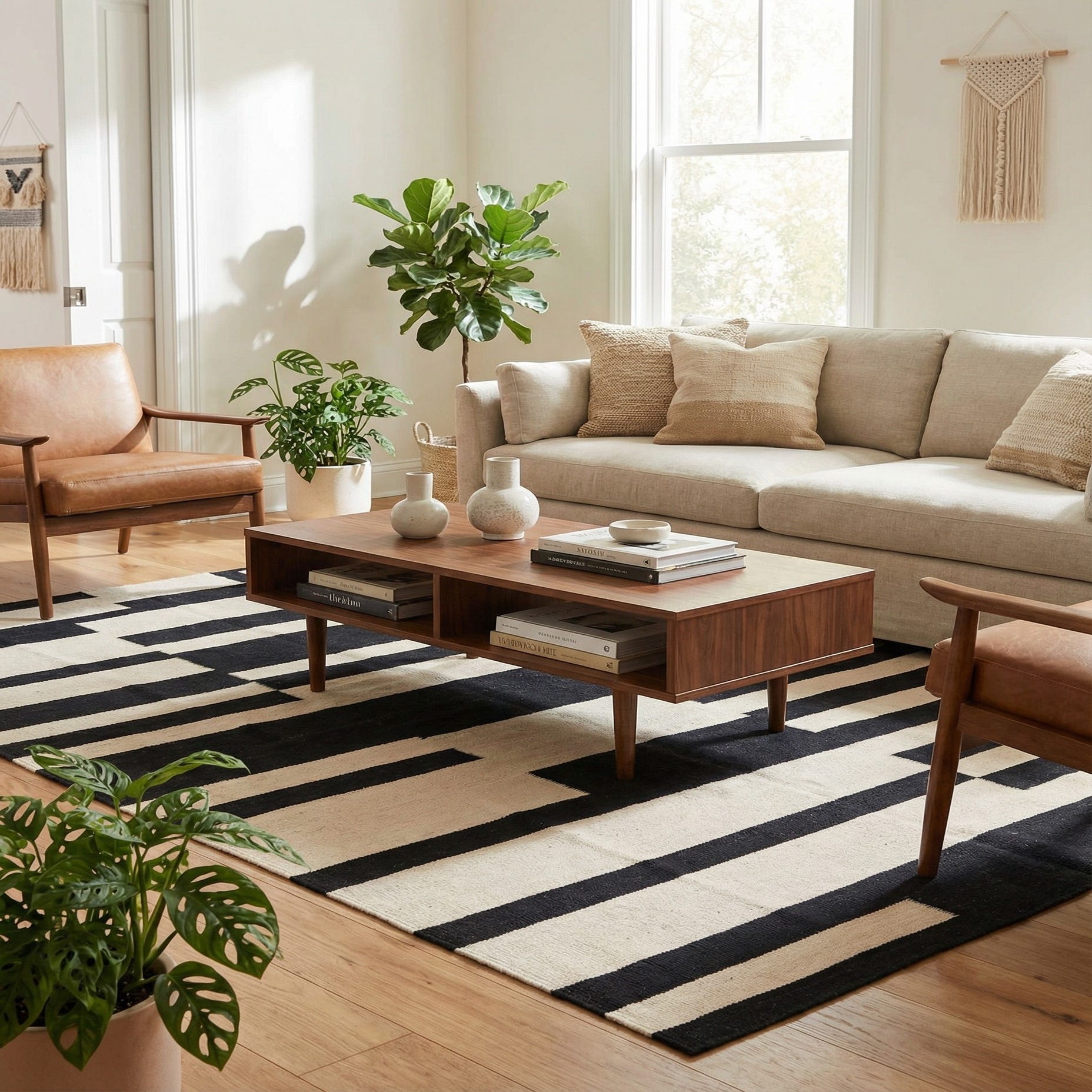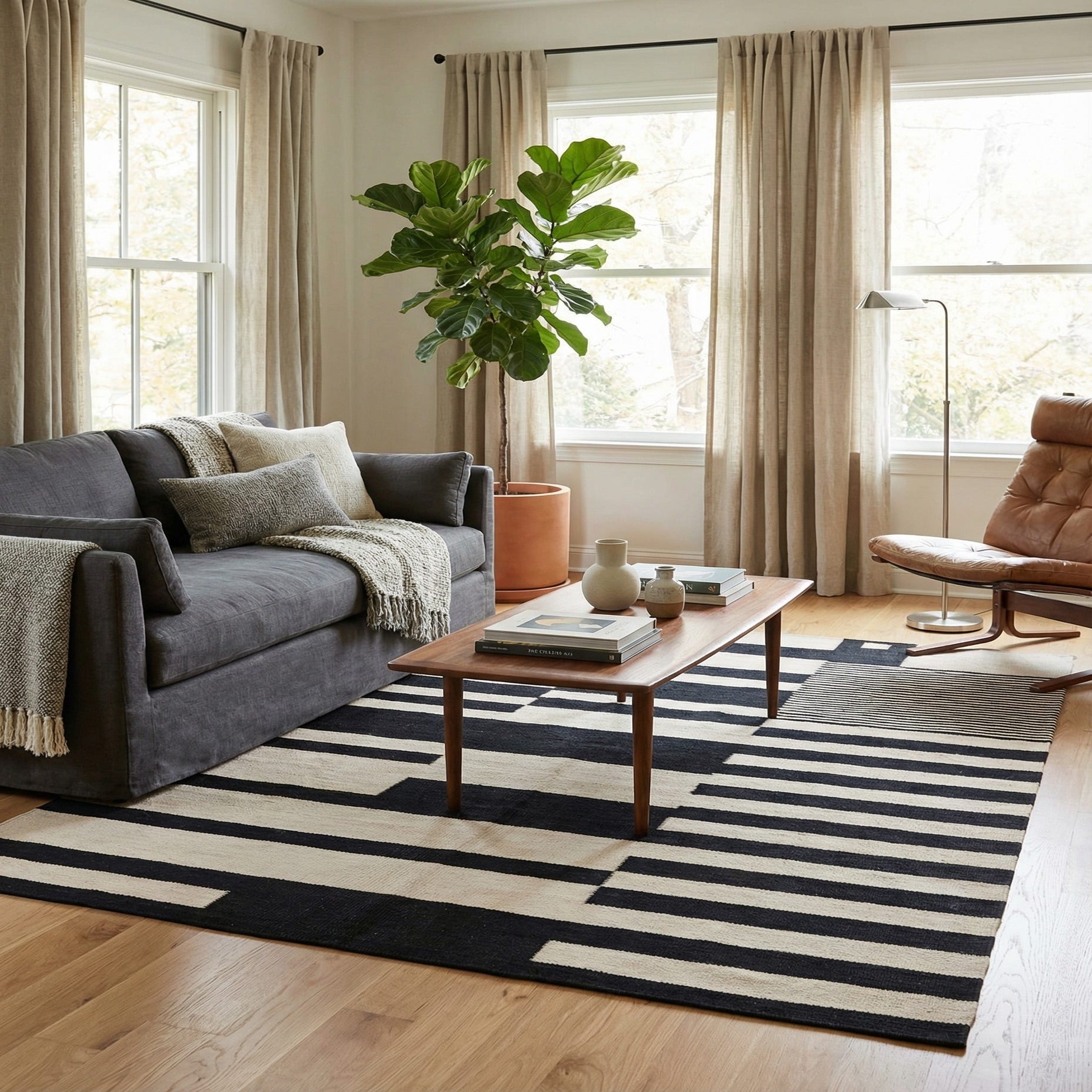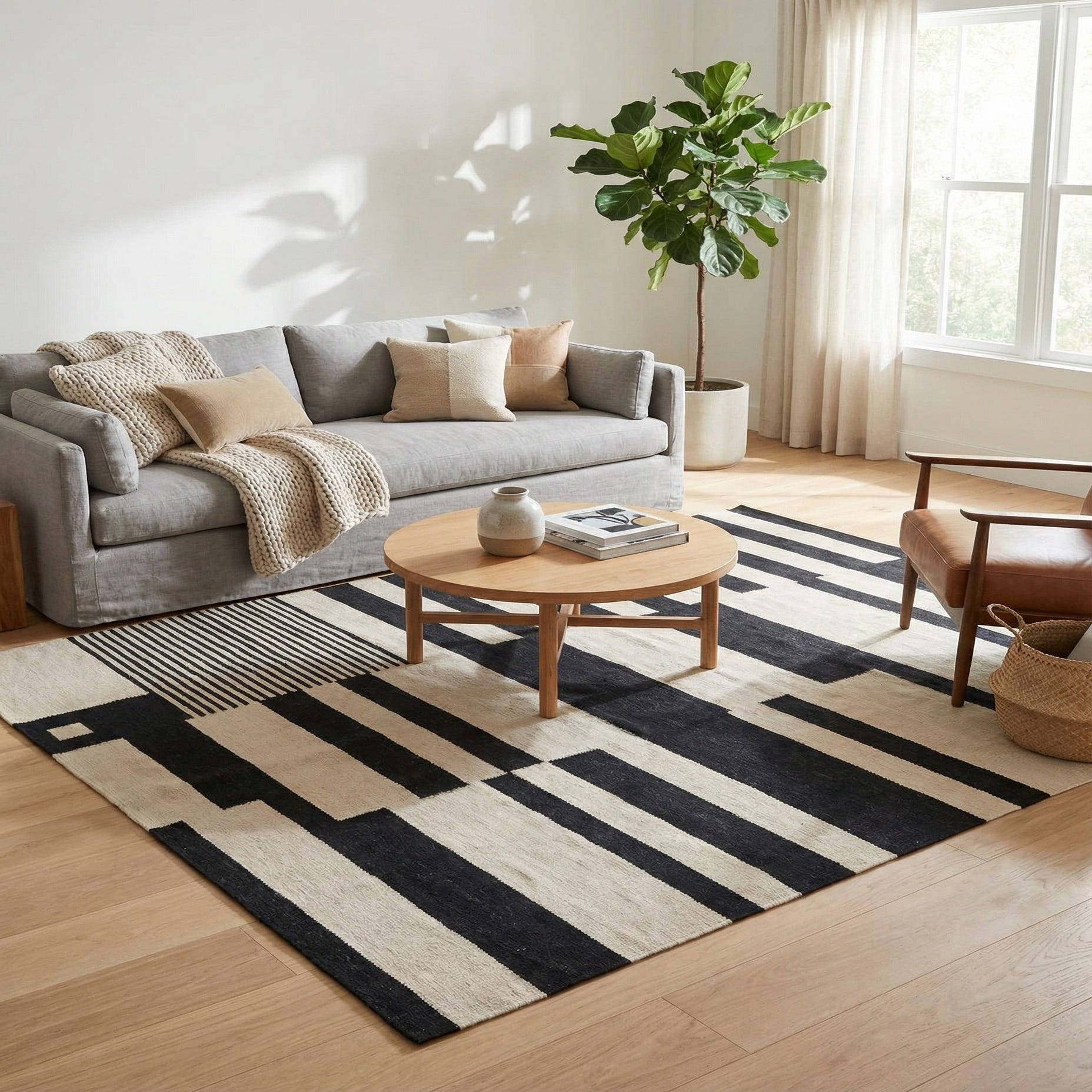 4' 8 x 6' 8 Hand Woven Kilim Modern Wool Rug