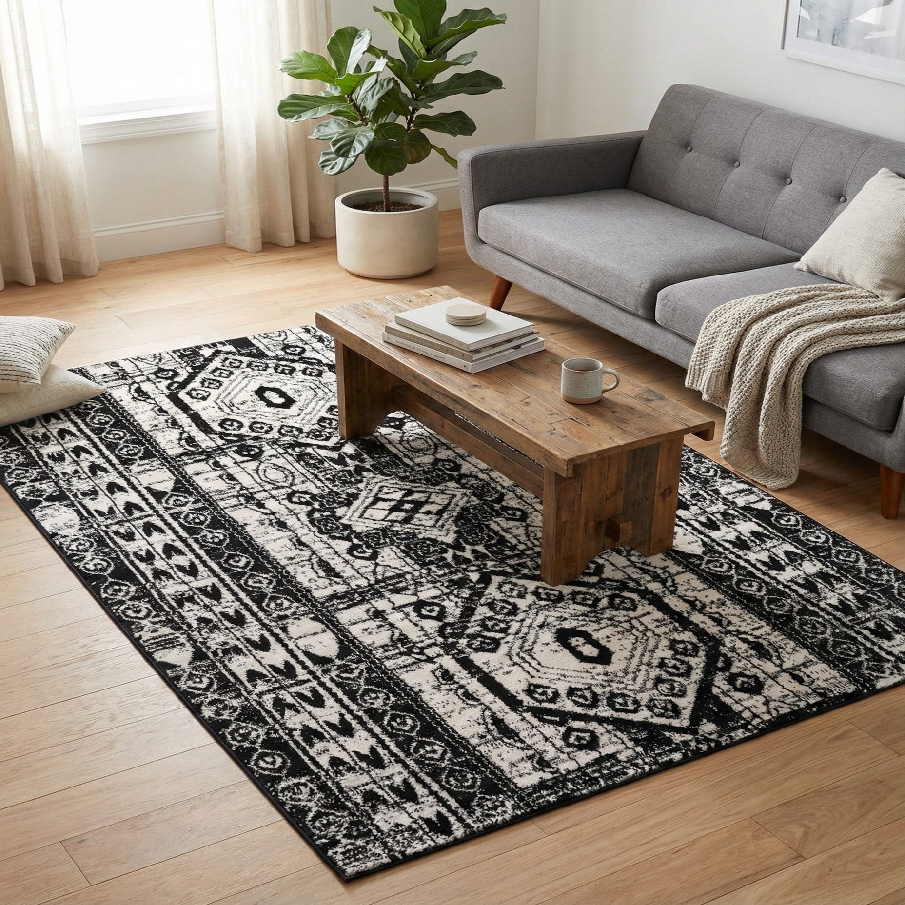 Primary color is Black and White. Colors in this rug include: Black and White, Black.