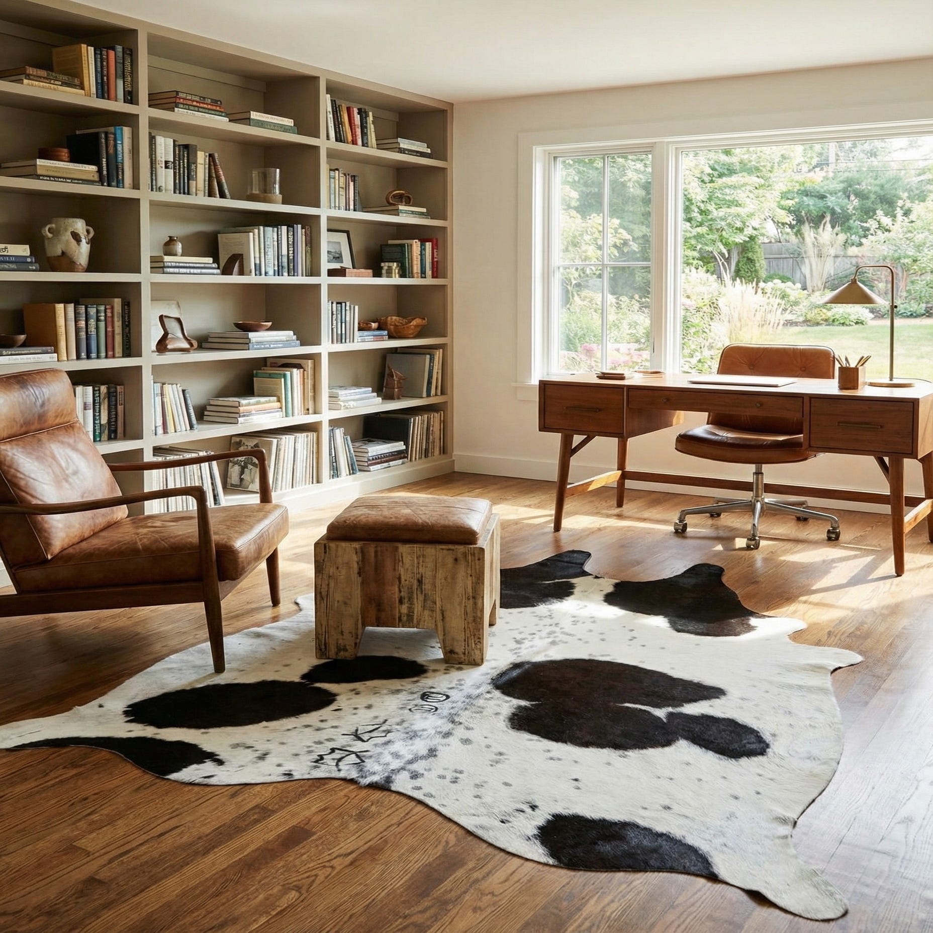 5' 1 x 5' 8 Cowhide Leather Square Rug