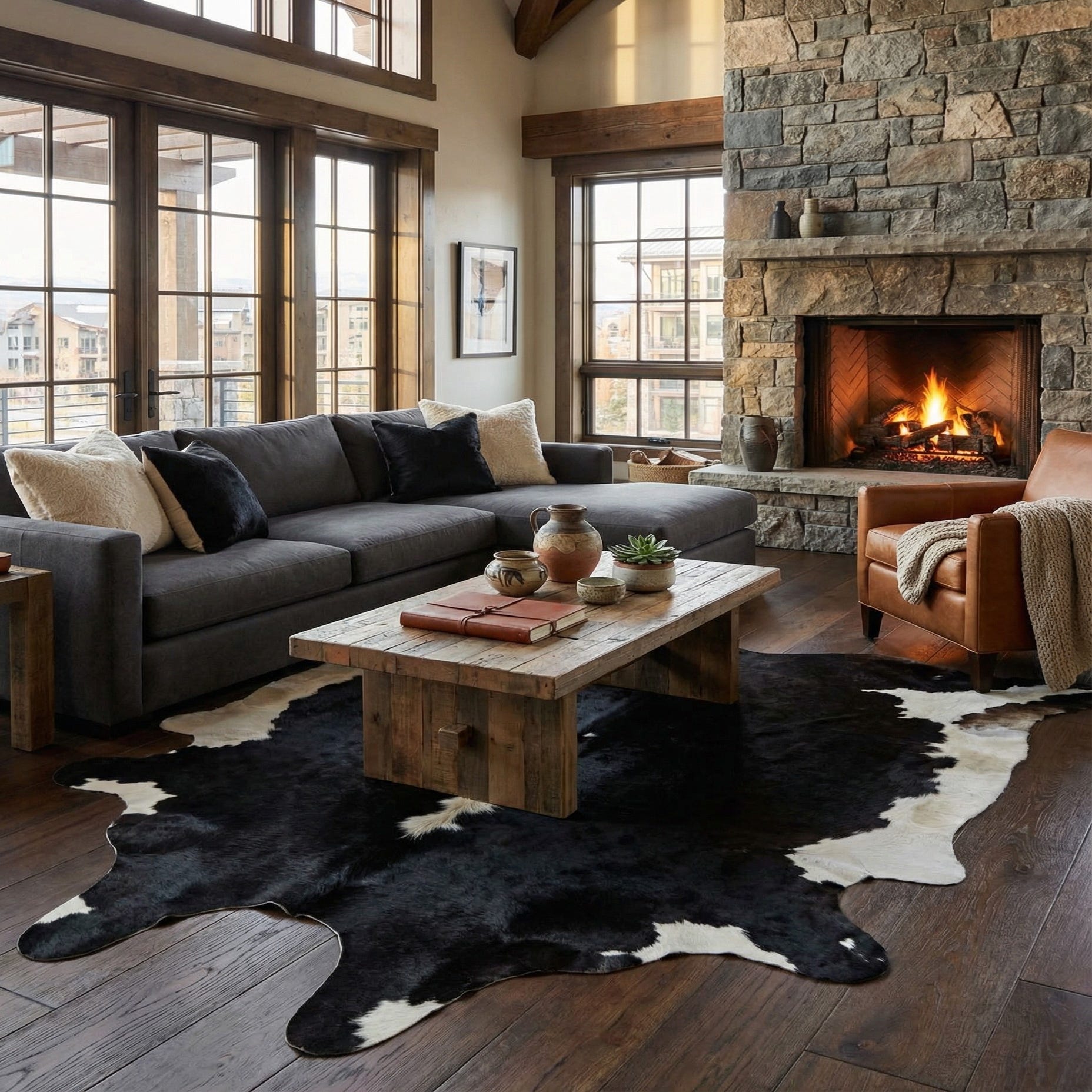 Detail image of 5' 6 x 6' 6 Cowhide Leather Rug