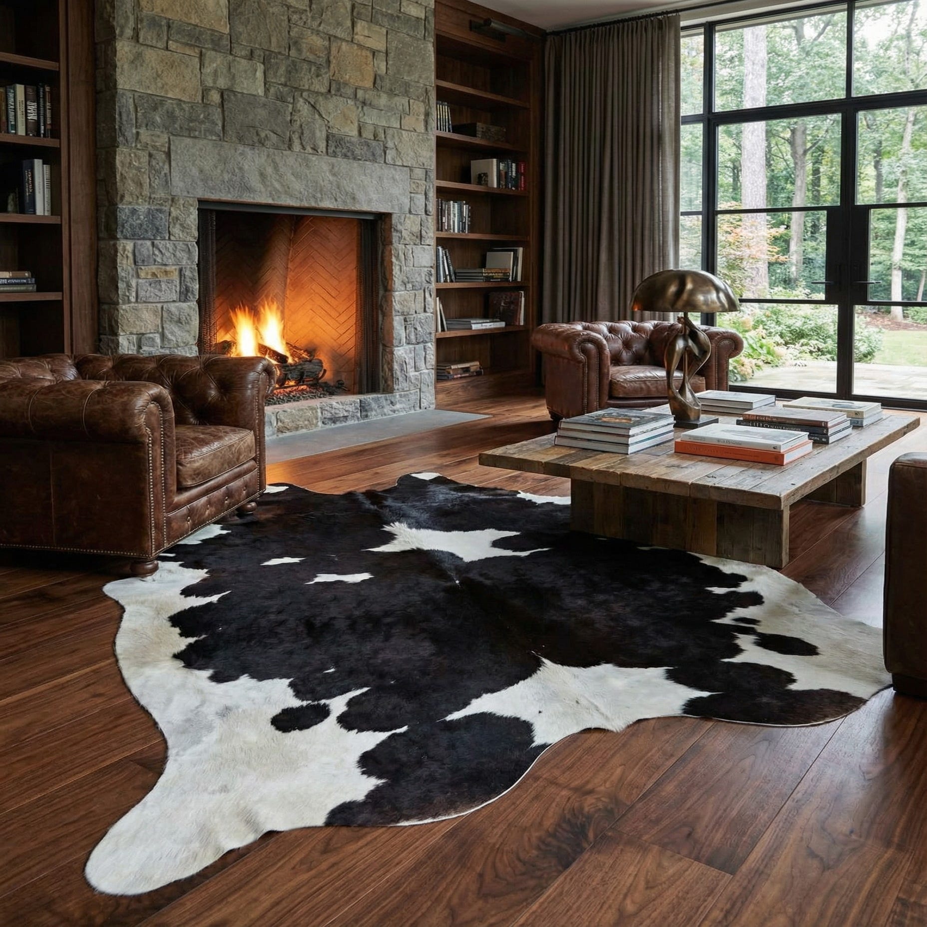 5' x 5' 7 Cowhide Leather Rug
