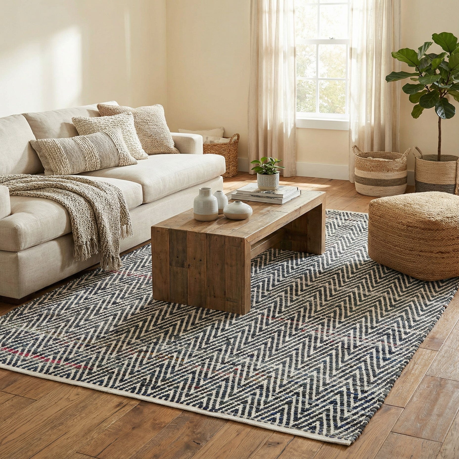 5' 1 x 8' Hand Woven Chindi Chevron Rug
