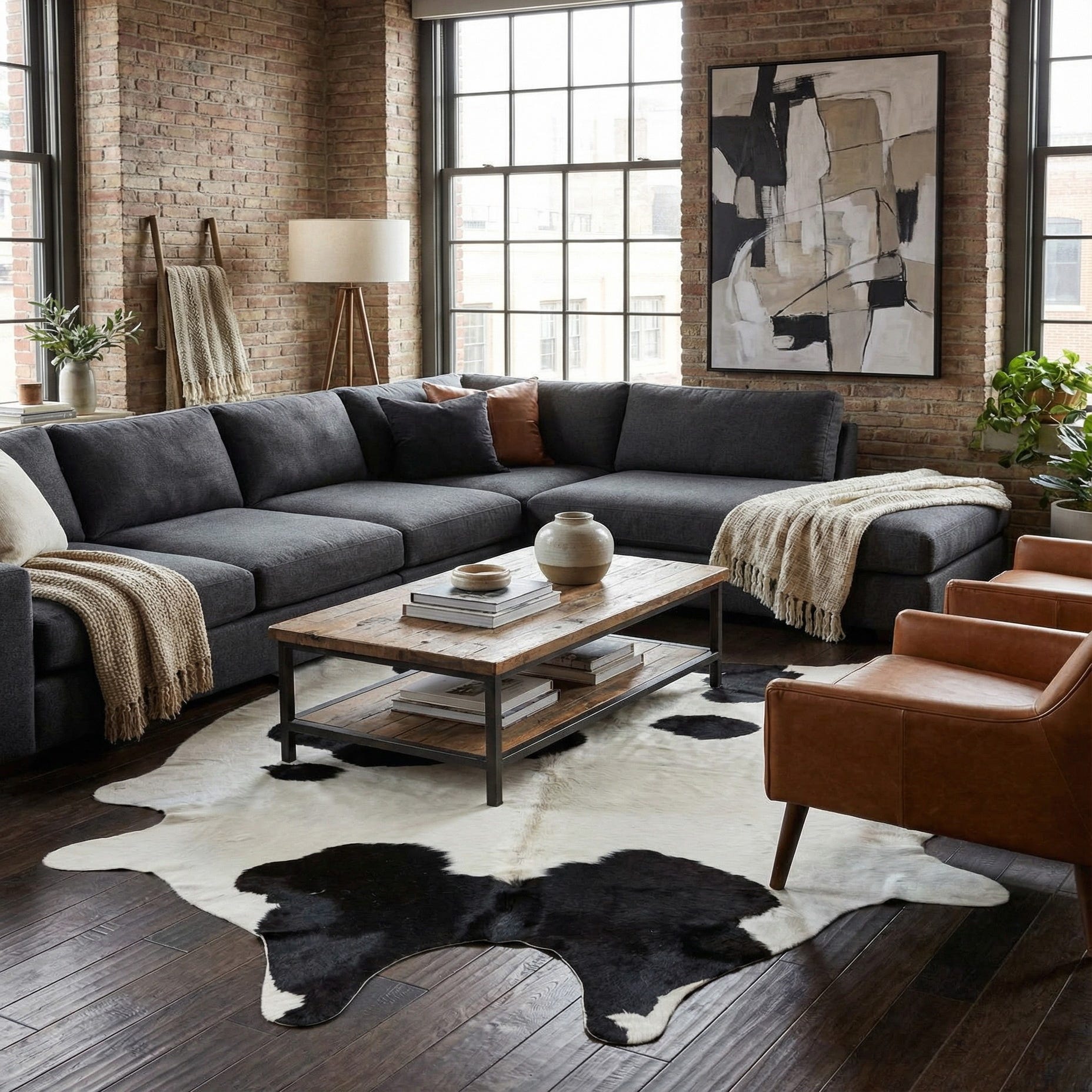 Primary image 6' 3 x 6' 10 Cowhide Leather Rug