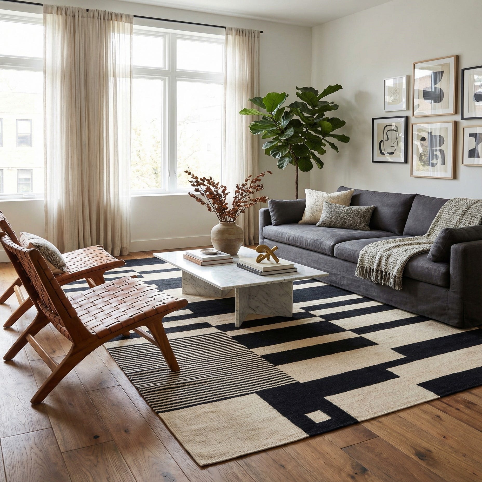 Detail image of 5' 8 x 7' 9  Hand Woven Kilim Modern Wool Rug
