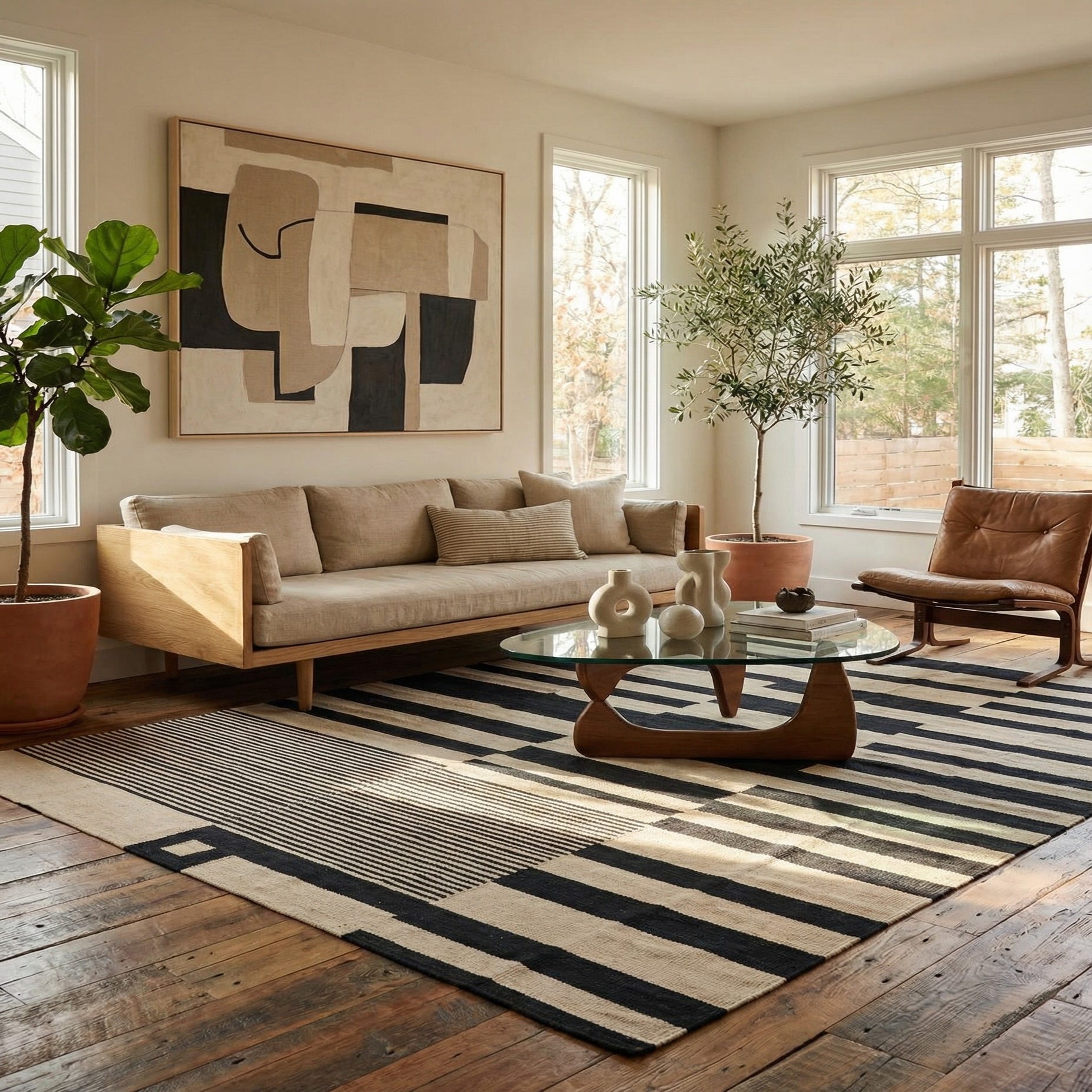 5' 2 x 6' 10 Hand Woven Kilim Modern Wool Rug