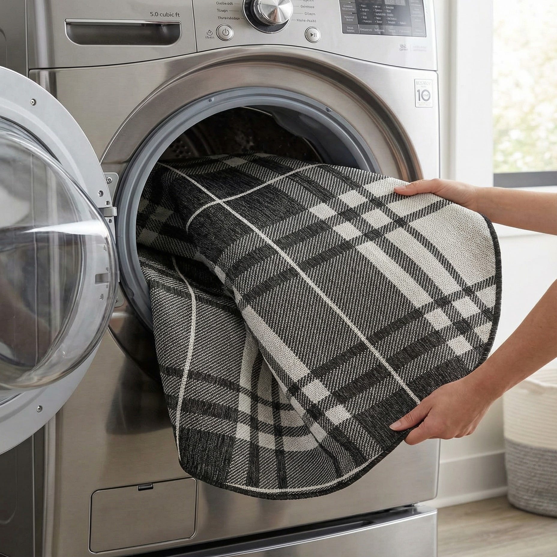 6' x 6' Washable Checkered Indoor / Outdoor Round Rug
