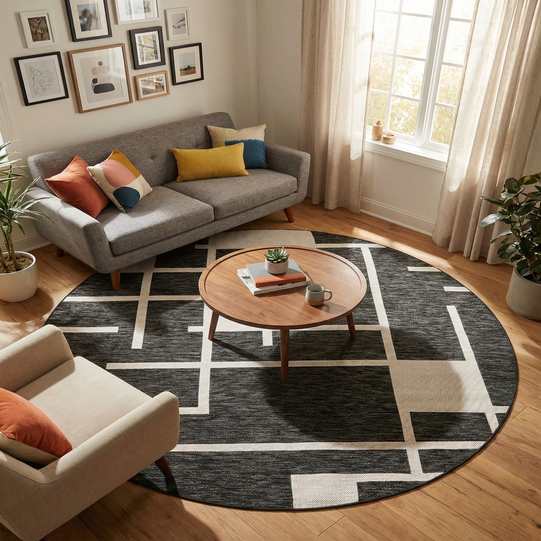 6' x 6' Washable Modern Indoor / Outdoor Round Rug