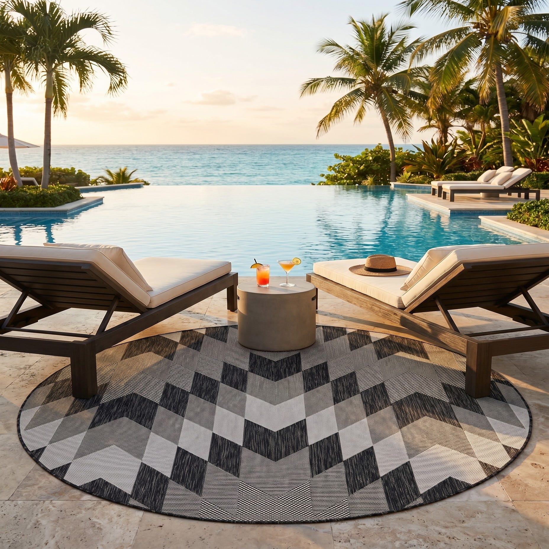 6' x 6' Easy-Clean Modern Indoor / Outdoor Round Rug