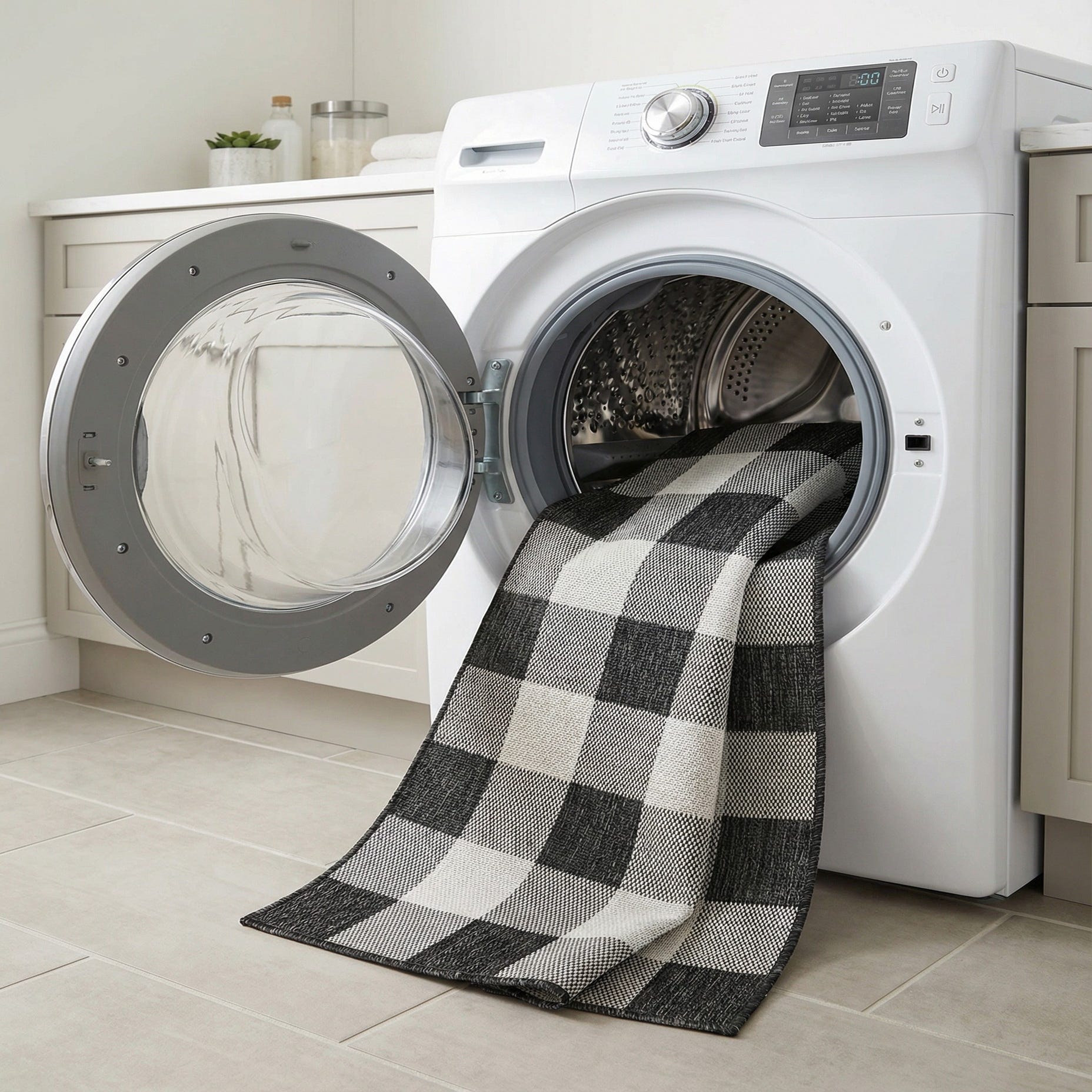 2' x 6' Washable Checkered Indoor / Outdoor Runner Rug