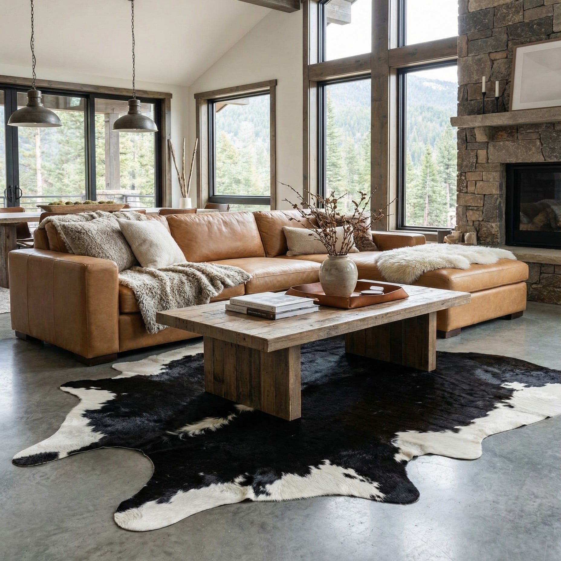 6' 1 x 6' 3 Cowhide Leather Square Rug