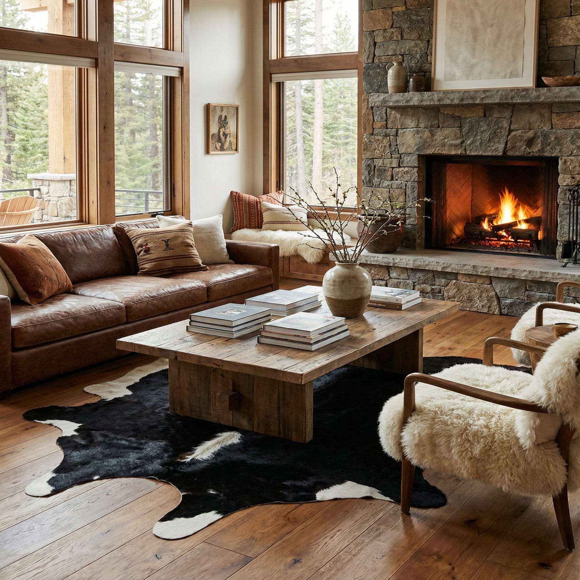 6' 4 x 6' 8 Cowhide Leather Square Rug