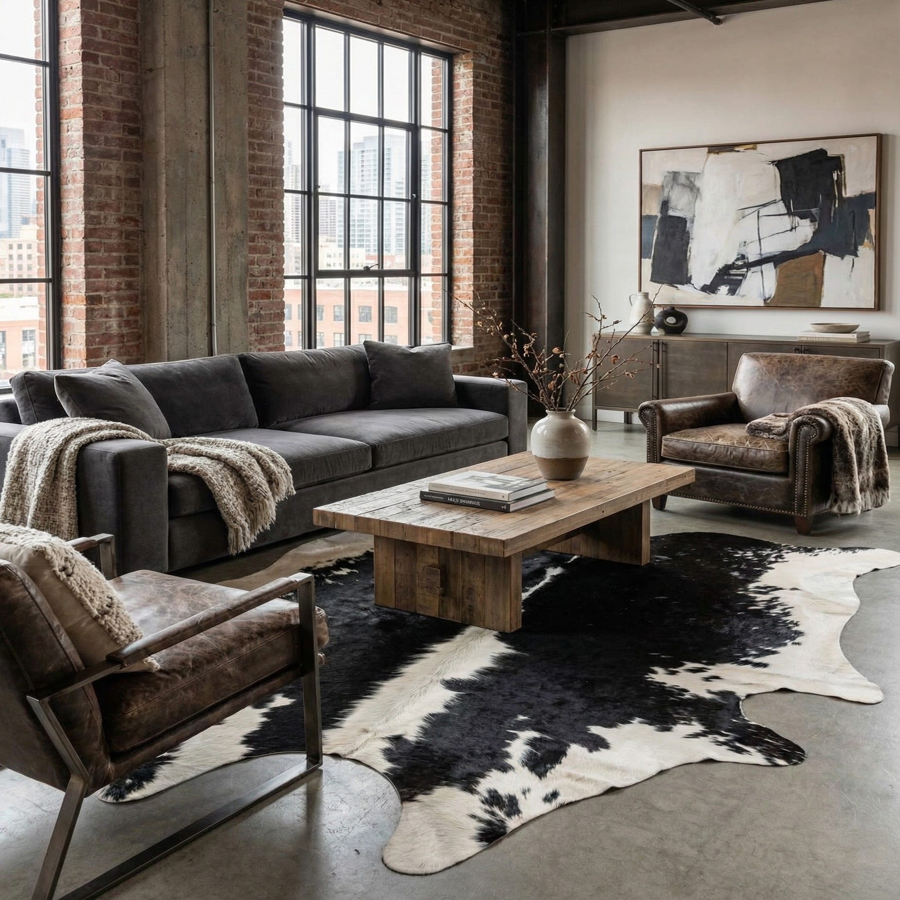 6' 2 x 6' 6 Cowhide Leather Square Rug