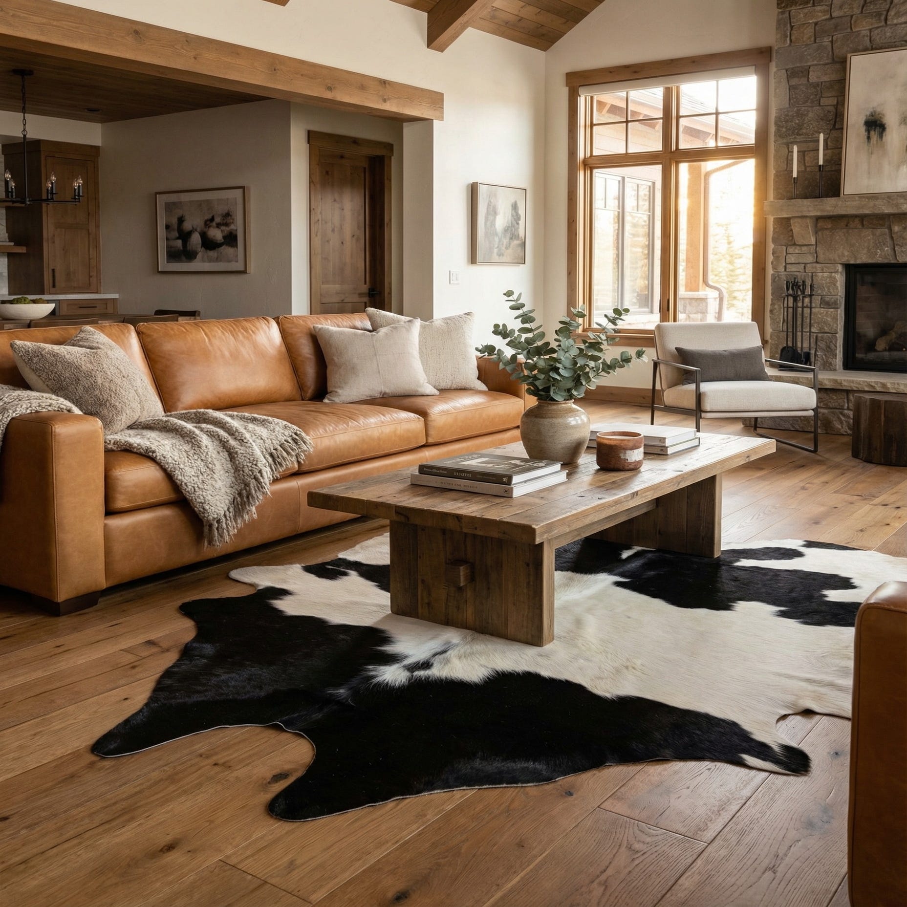 5' 6 x 6' 2 Cowhide Leather Square Rug