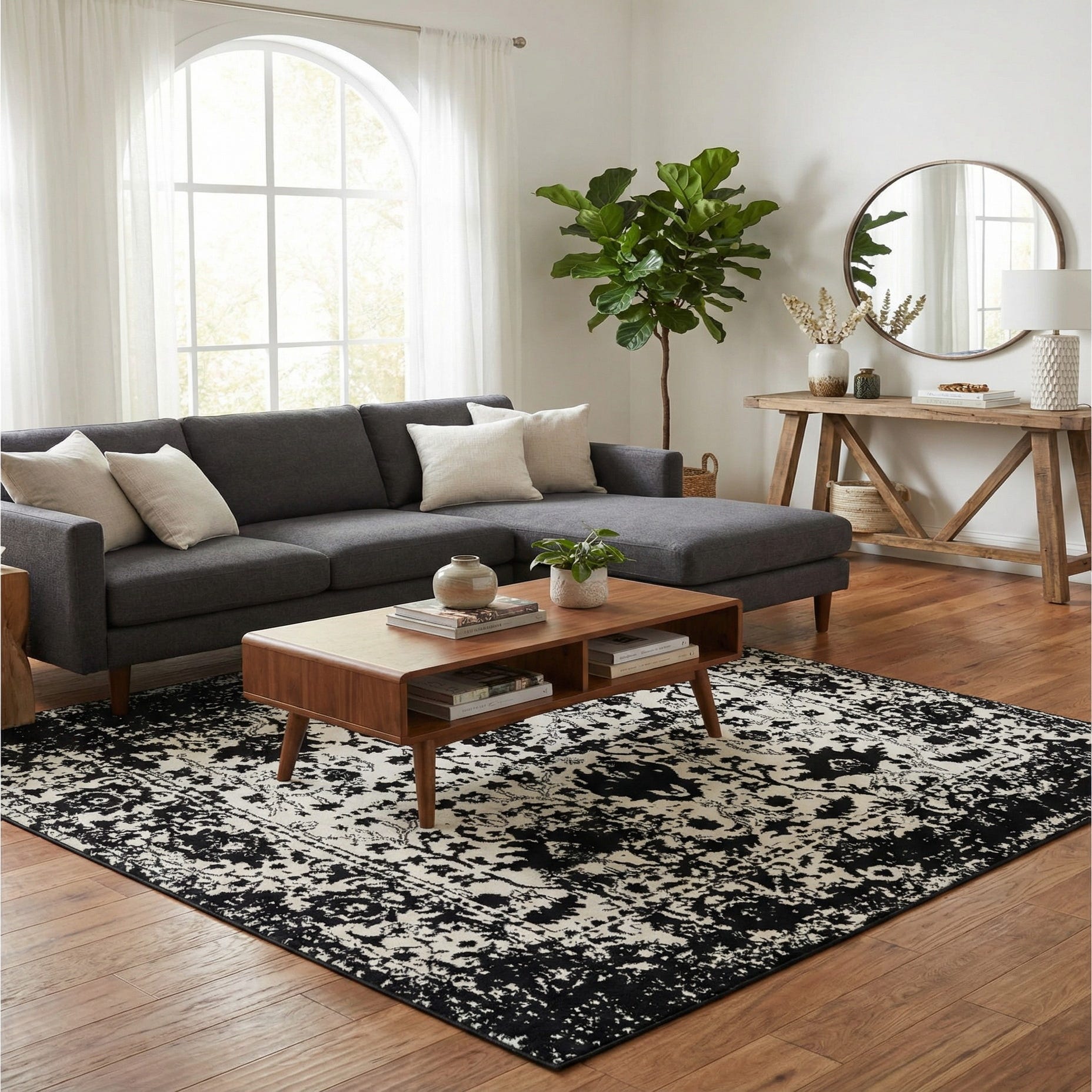 Primary color is Black and White. Colors in this rug include: Black and White, Black.