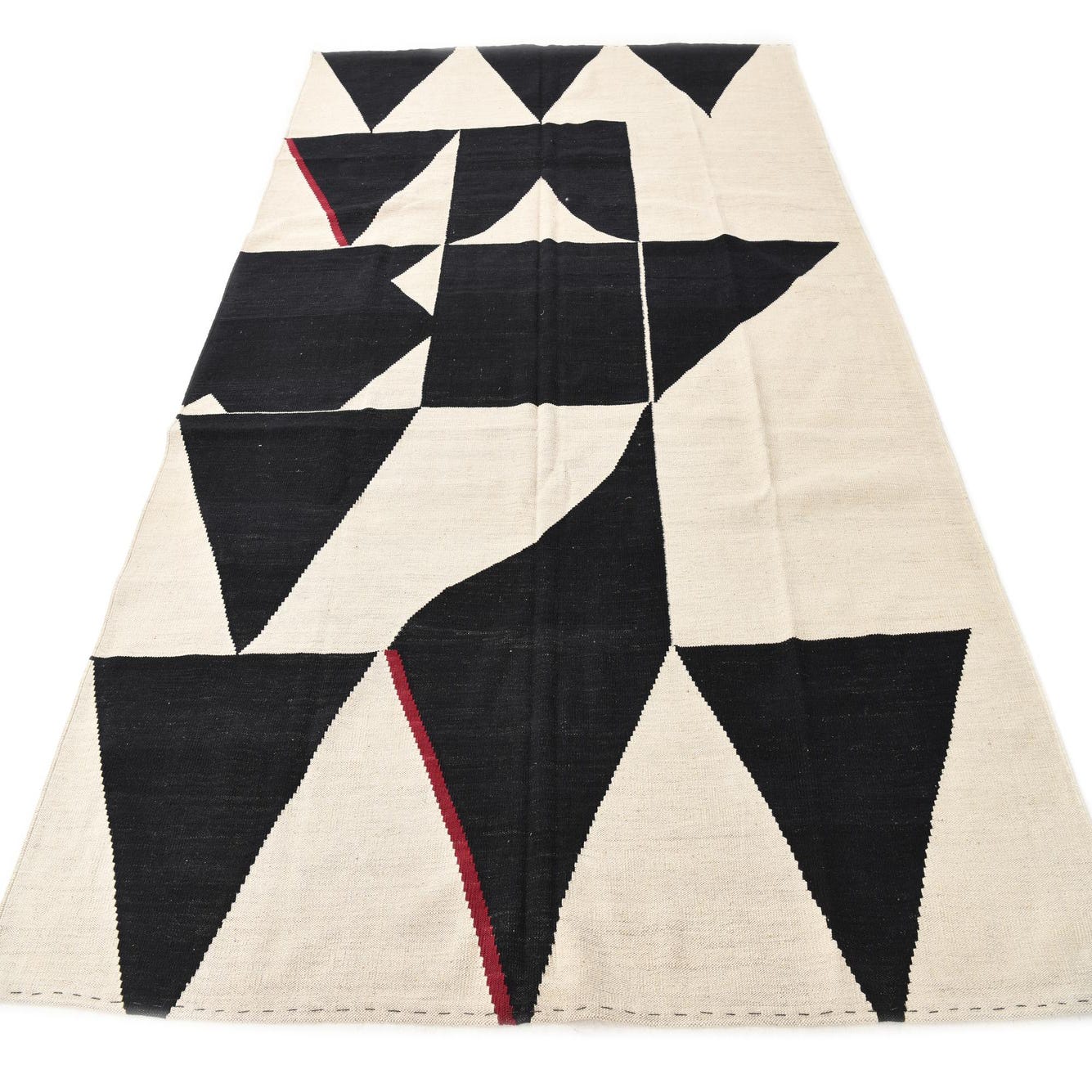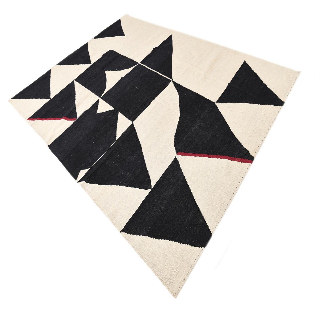 Primary color is Black and White. Colors in this rug include: Black and White, Burgundy.