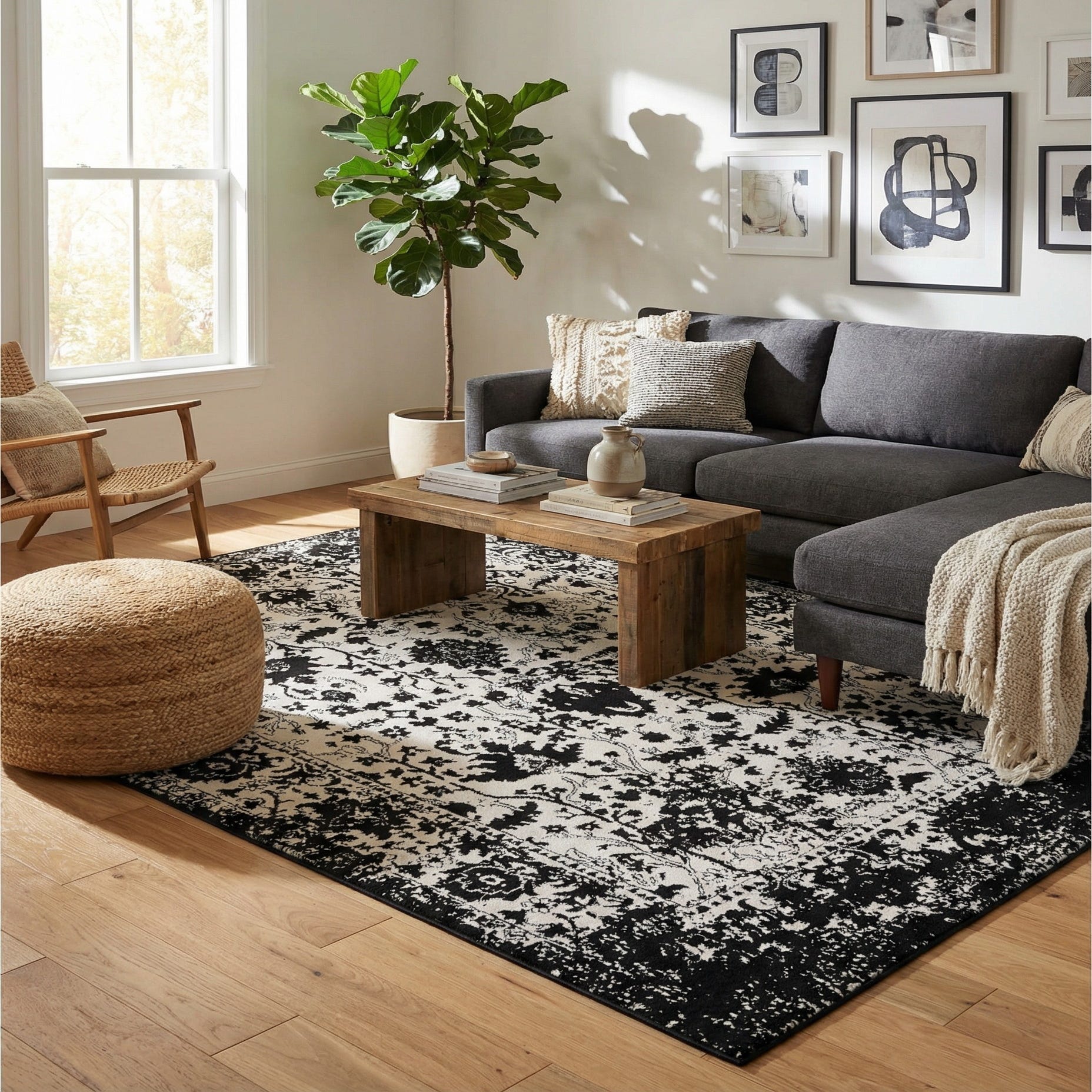 Primary color is Black and White. Colors in this rug include: Black and White, Black.