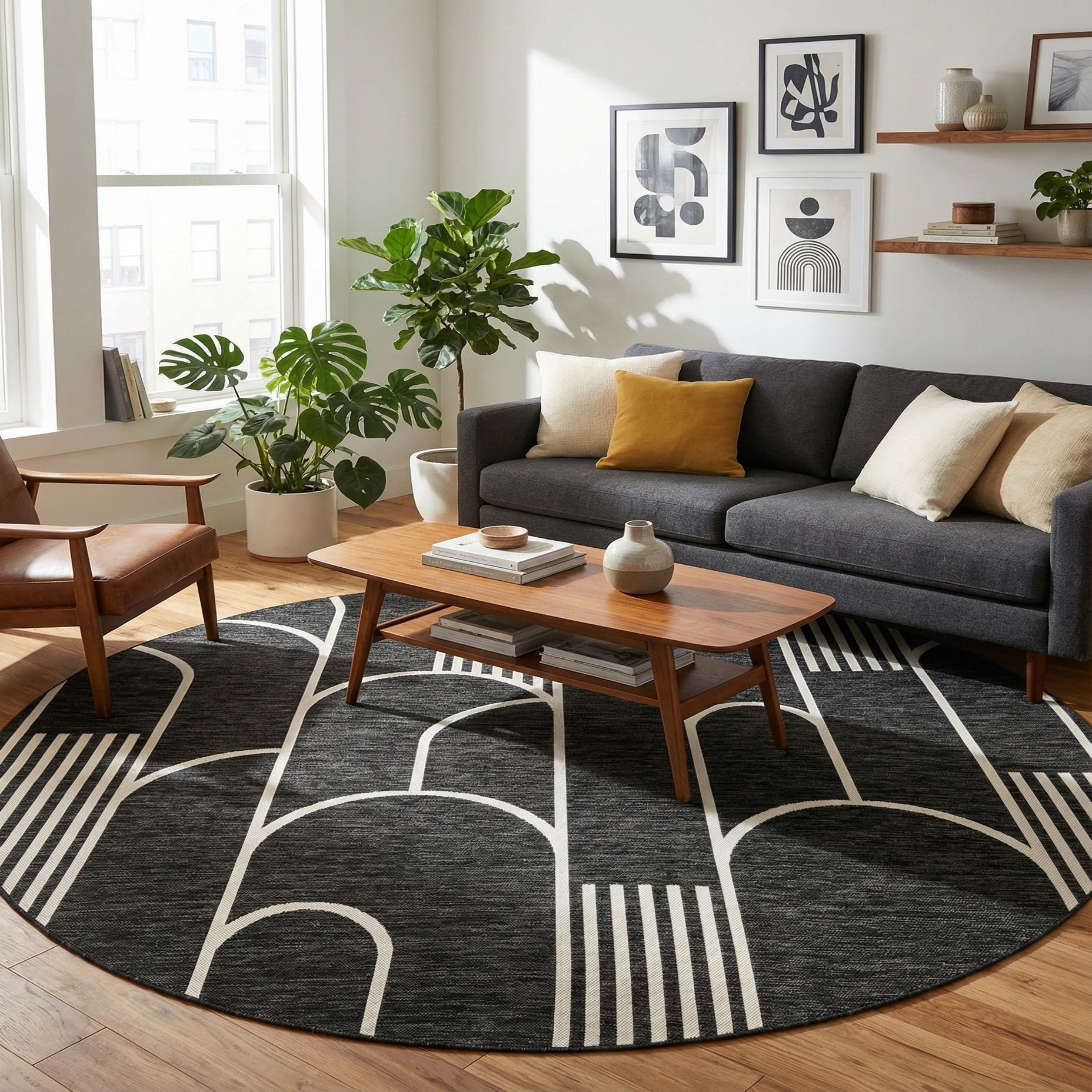 Primary image 7' 10 x 7' 10  Washable Modern Indoor / Outdoor Round Rug