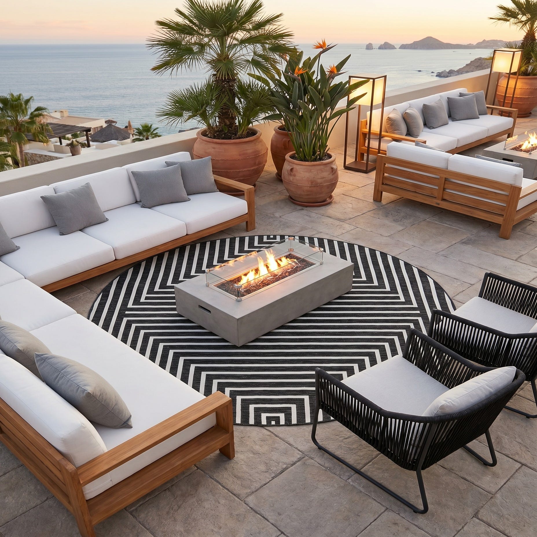 7' 10 x 7' 10 Easy-Clean Modern Indoor / Outdoor Round Rug