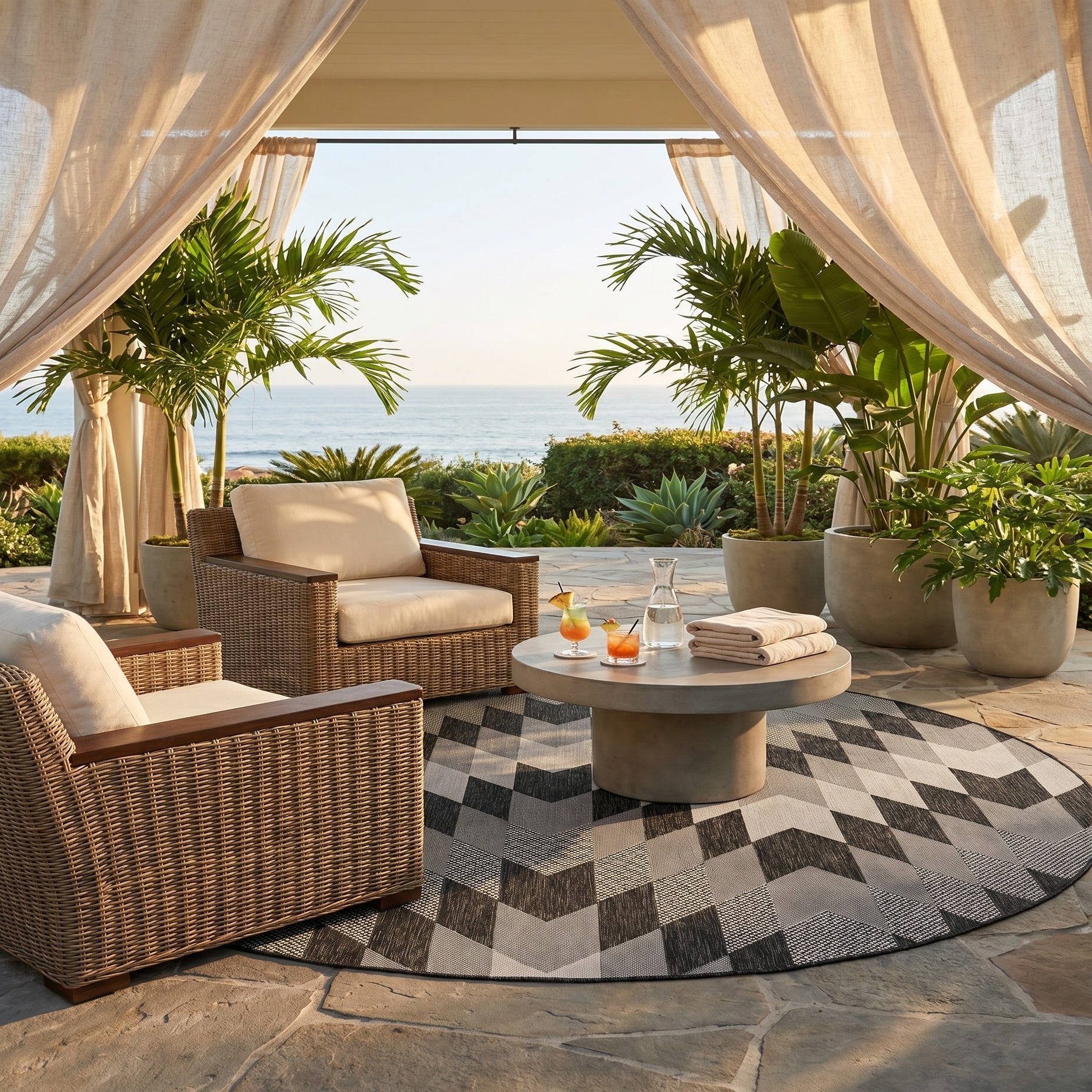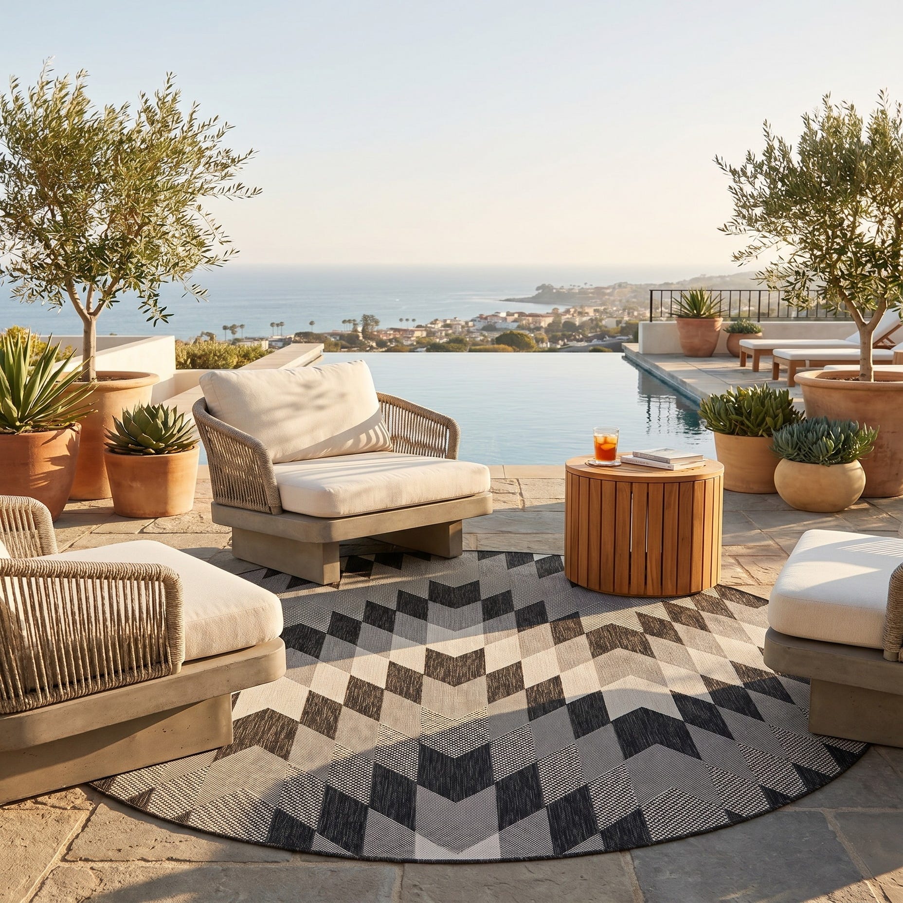 7' 10 x 7' 10 Easy-Clean Modern Indoor / Outdoor Round Rug