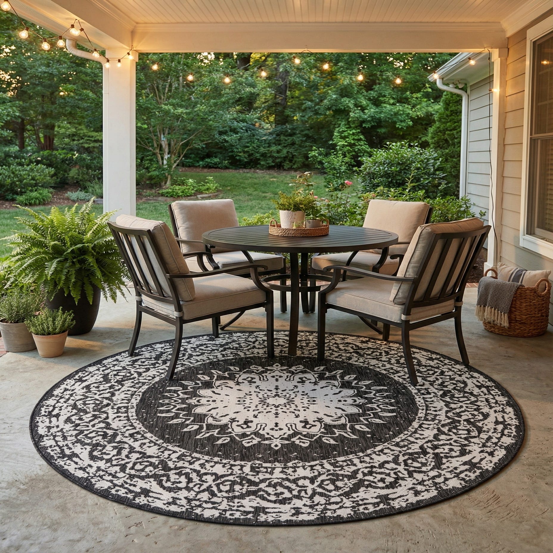 Primary image 7' 10 x 7' 10  Washable Traditional Indoor / Outdoor Round Rug